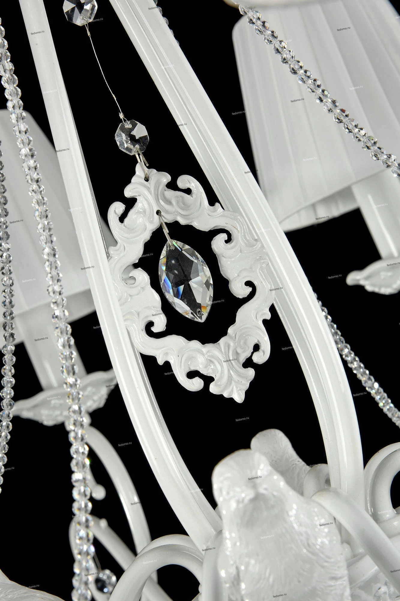 Очень красивая люстра стиля прованс, сделана из качественного металла и ткани, оснащена восемью лампочками. Она отлично подходит для гостиной, спальни и кабинета и может стать главным источником света. Была легко установлена на металлический крюк. В общем, это отличный выбор для любой комнаты!