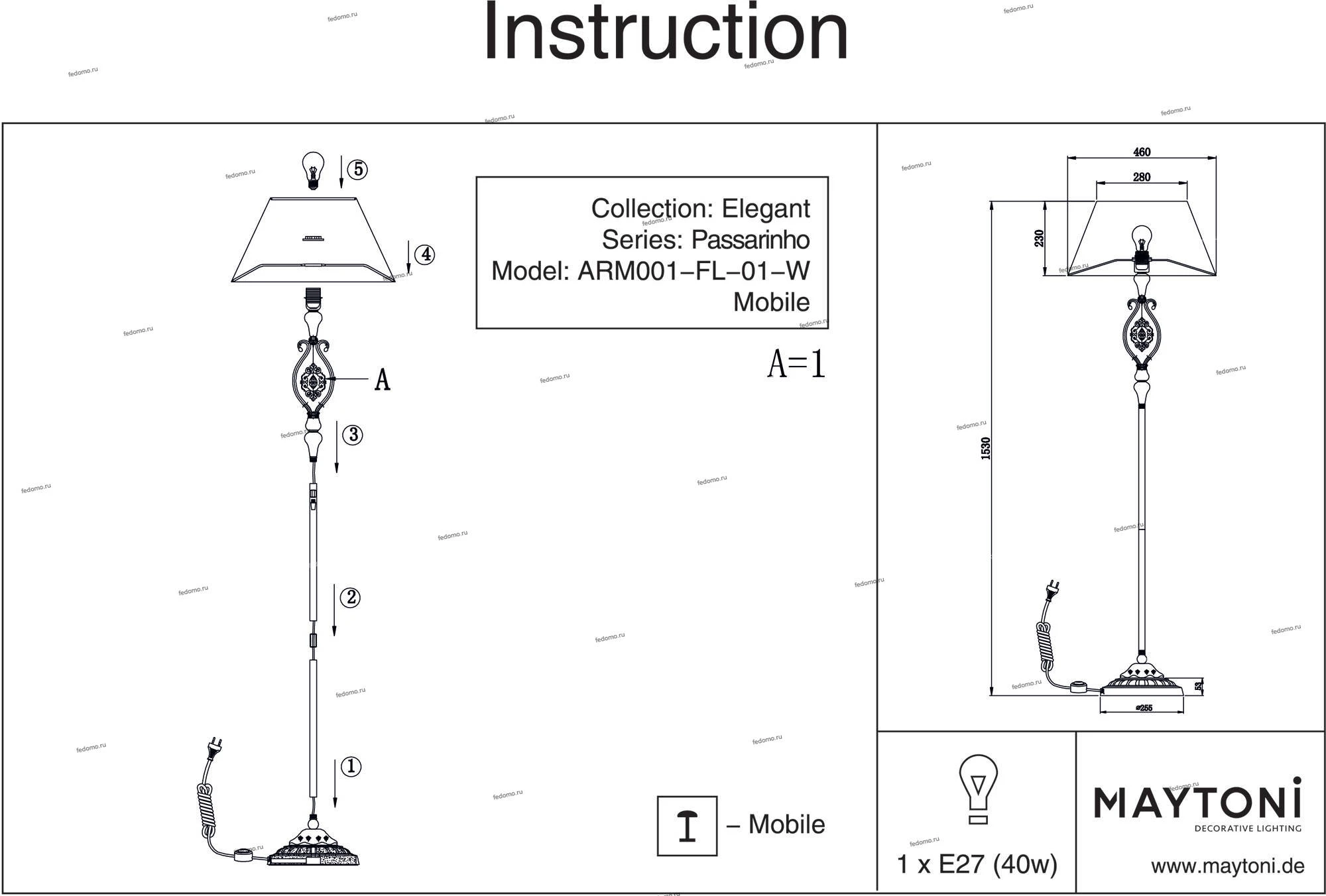 Торшер ARM001-FL-01-W из серии Passarinho от компании Maytoni будет удачно смотреться на полу в спальне, оформленной в стиле прованс. Торшер имеет 1 абажур и 1 лампочку с цоколем E27, мощностью 40W и напряжением 220V. Модель устанавливается на основание, есть возможность подключения диммера. Основной материал и цвет арматуры - белый металл, материал абажура - ткань. Габариты изделия: высота - 1530 мм. Лампочки в комплект не входят. Лучшая цена и условия доставки на Maytoni ARM001-FL-01-W в интернет-магазине Fedomo.ru.