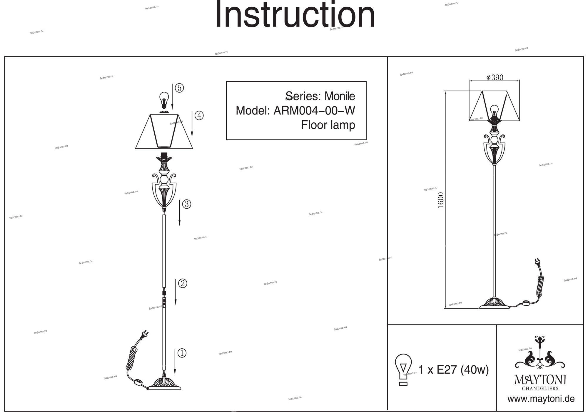 Торшер ARM004-00-W из серии Monile от компании Maytoni будет удачно смотреться на полу в гостиной, спальне, кабинете, оформленных в классическом стиле. Торшер имеет 1 абажур и 1 лампочку с цоколем E27, мощностью 40W и напряжением 220V. Модель устанавливается на основание, есть возможность подключения диммера. Основной материал и цвет арматуры - белый металл, материал абажура - ткань. Торшер оборудован выключателем на корпусе. Габариты изделия: высота - 1600 мм. Лампочки в комплект не входят. Лучшая цена и условия доставки на Maytoni ARM004-00-W в интернет-магазине Fedomo.ru.