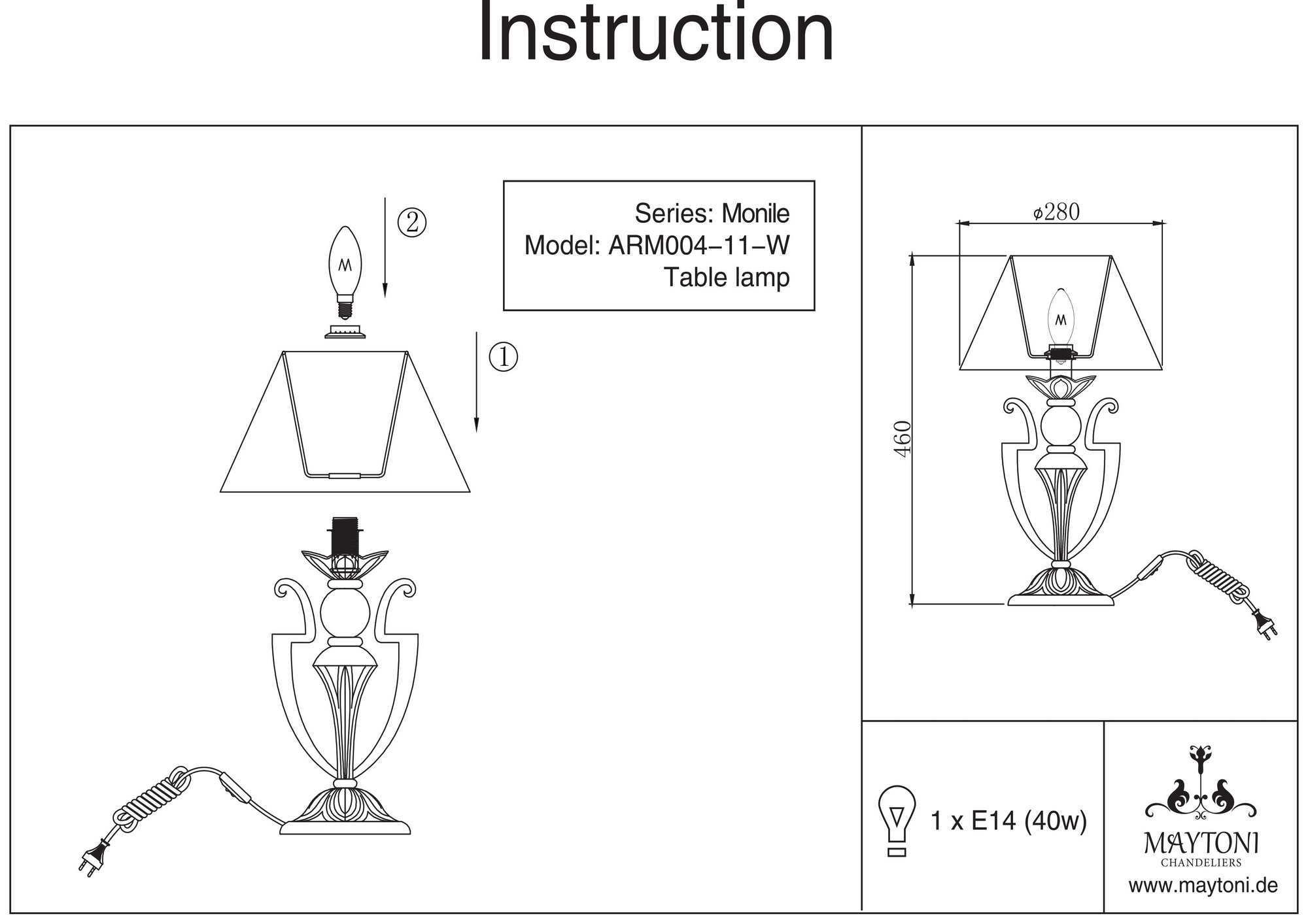Интерьерная настольная лампа ARM004-11-W из серии Monile от компании Maytoni будет удачно смотреться на столе в гостиной, спальне, оформленных в классическом стиле. Интерьерная лампа имеет 1 абажур и 1 лампочку с цоколем E14, мощностью 40W и напряжением 220V. Модель устанавливается на основание, есть возможность подключения диммера. Основной материал и цвет арматуры - белый металл, материал абажура - ткань. Интерьерная лампа оборудована выключателем на корпусе. Габариты изделия: высота - 460 мм. Лампочки в комплект не входят. Лучшая цена и условия доставки на Maytoni ARM004-11-W в интернет-магазине Fedomo.ru.