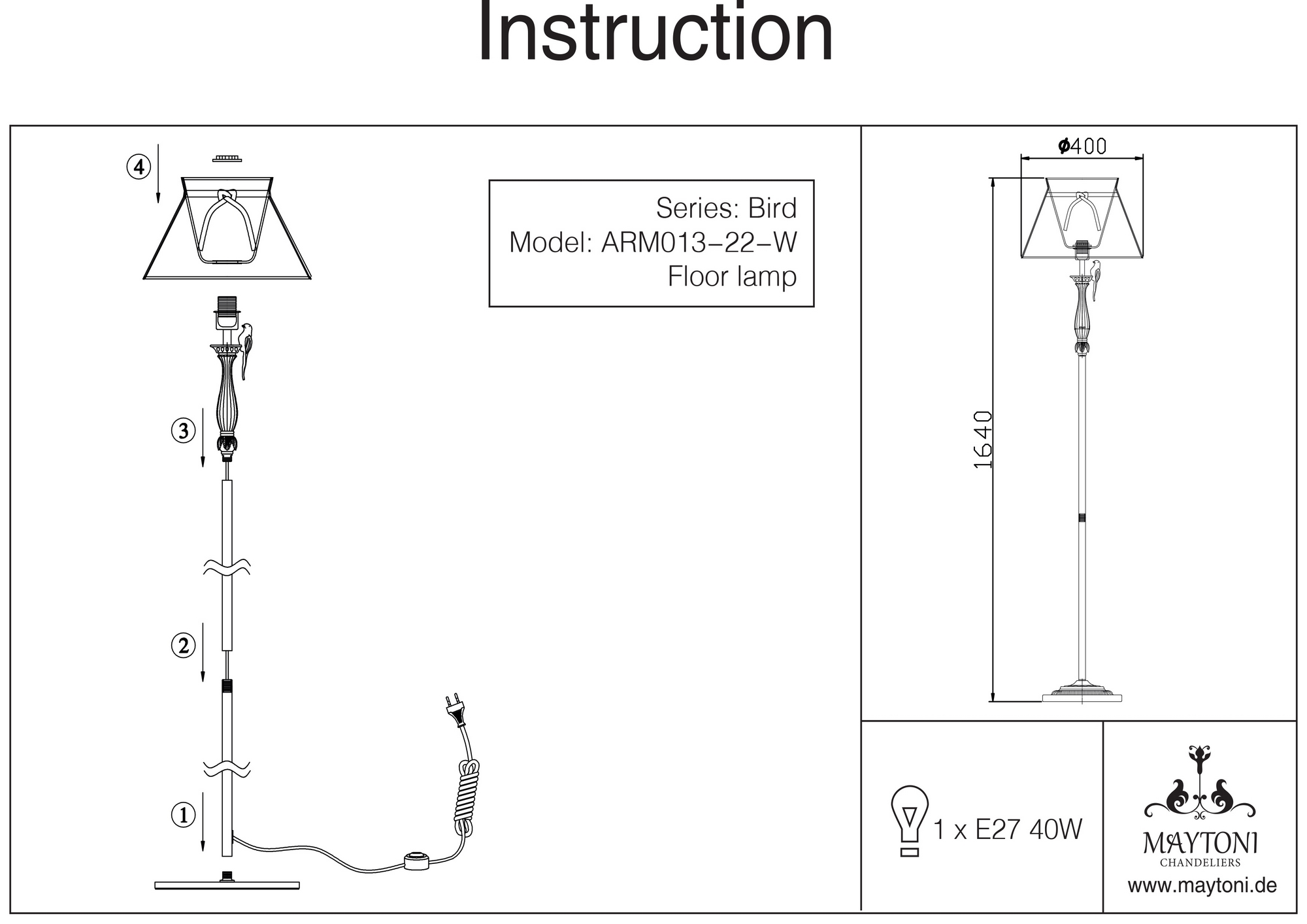 Этот торшер просто шикарен! Он отлично дополнит классический стиль моей гостиной. 1 абажур и 1 лампочка в комплекте, возможность подключения диммера, и выглядит он просто потрясающе. Очень доволен покупкой!