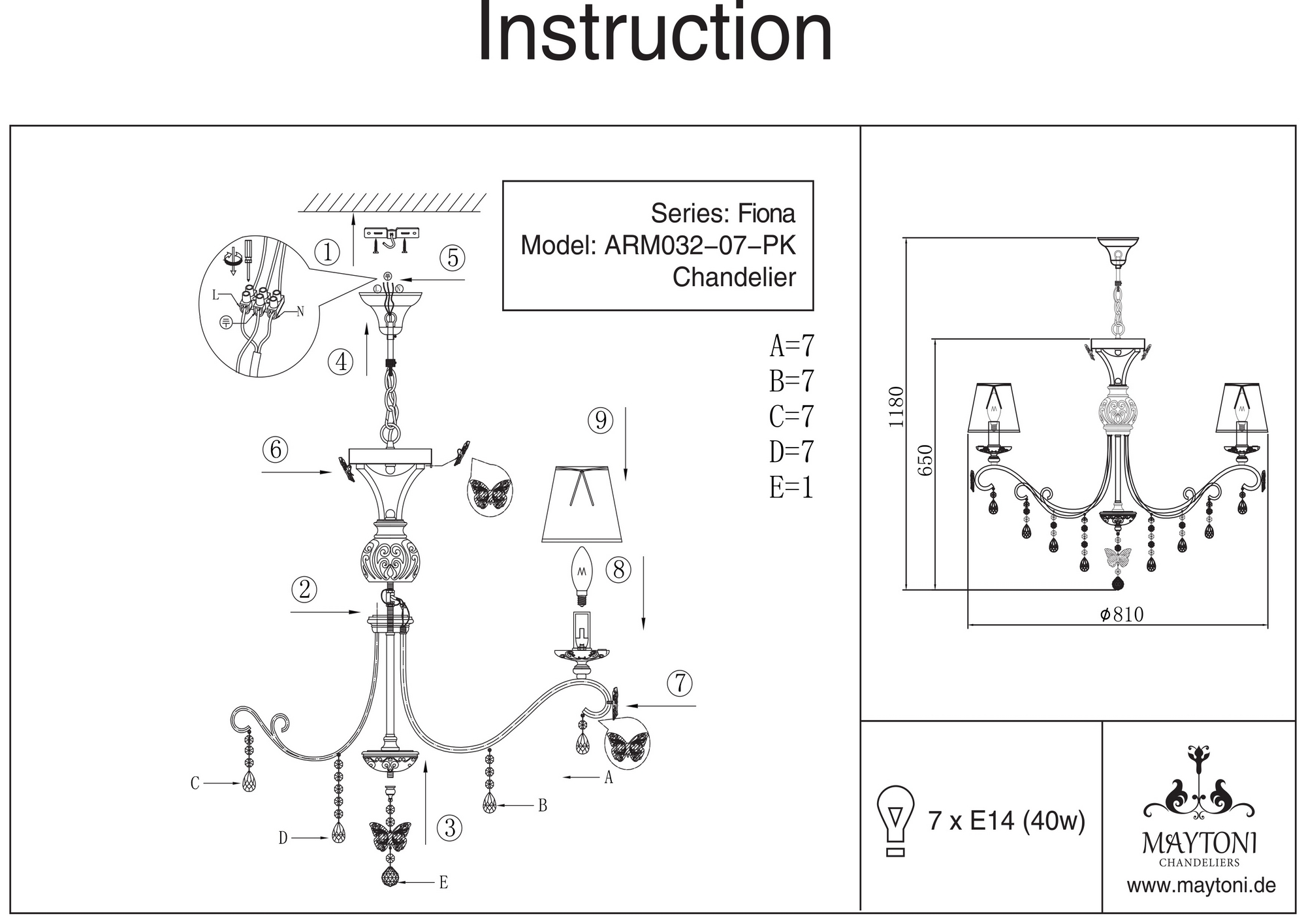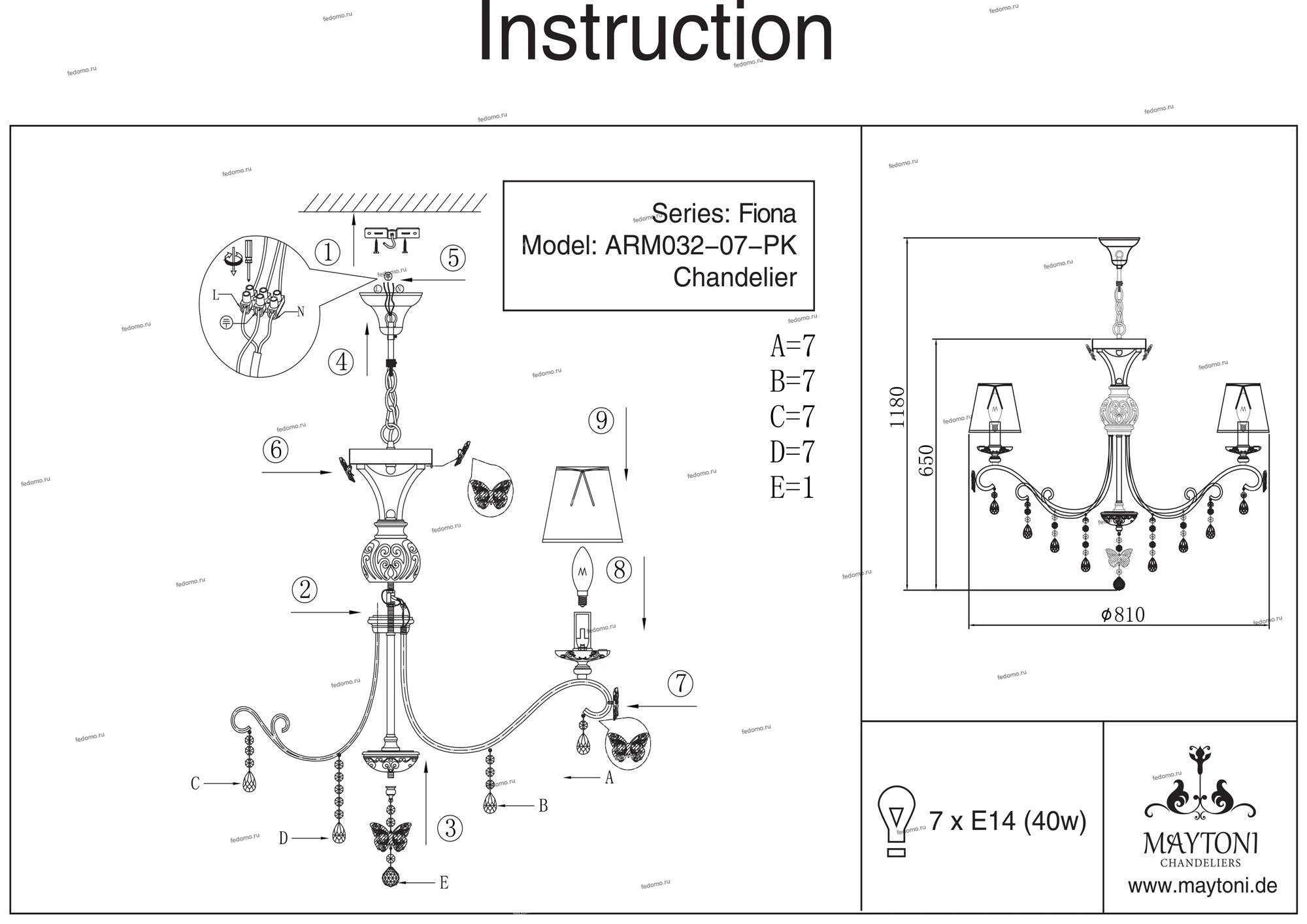 Люстра 2 в 1 потолочная и подвесная ARM032-07-PK из серии Fiona от компании Maytoni устанавливается на металлический крюк. Классическая люстра прекрасно подойдет в качестве источника основного света для гостиной, спальни, кухни, кабинета, оформленных в стиле арт-деко. Основной цвет модели - белый, материал арматуры - металл. Люстра имеет 7 абажуров, материал изготовления - ткань. Модель оснащена цоколем E14 (7xE14), имеет 7 лампочек с общей мощностью 280W и напряжением 220V. Светильник поддерживает подключение диммера. Габариты: высота - 1050 мм, диаметр - 810 мм, длина подвеса - 400 мм. Лампочки в комплект не входят. Лучшая цена и условия доставки на Maytoni ARM032-07-PK в интернет-магазине Fedomo.ru.
