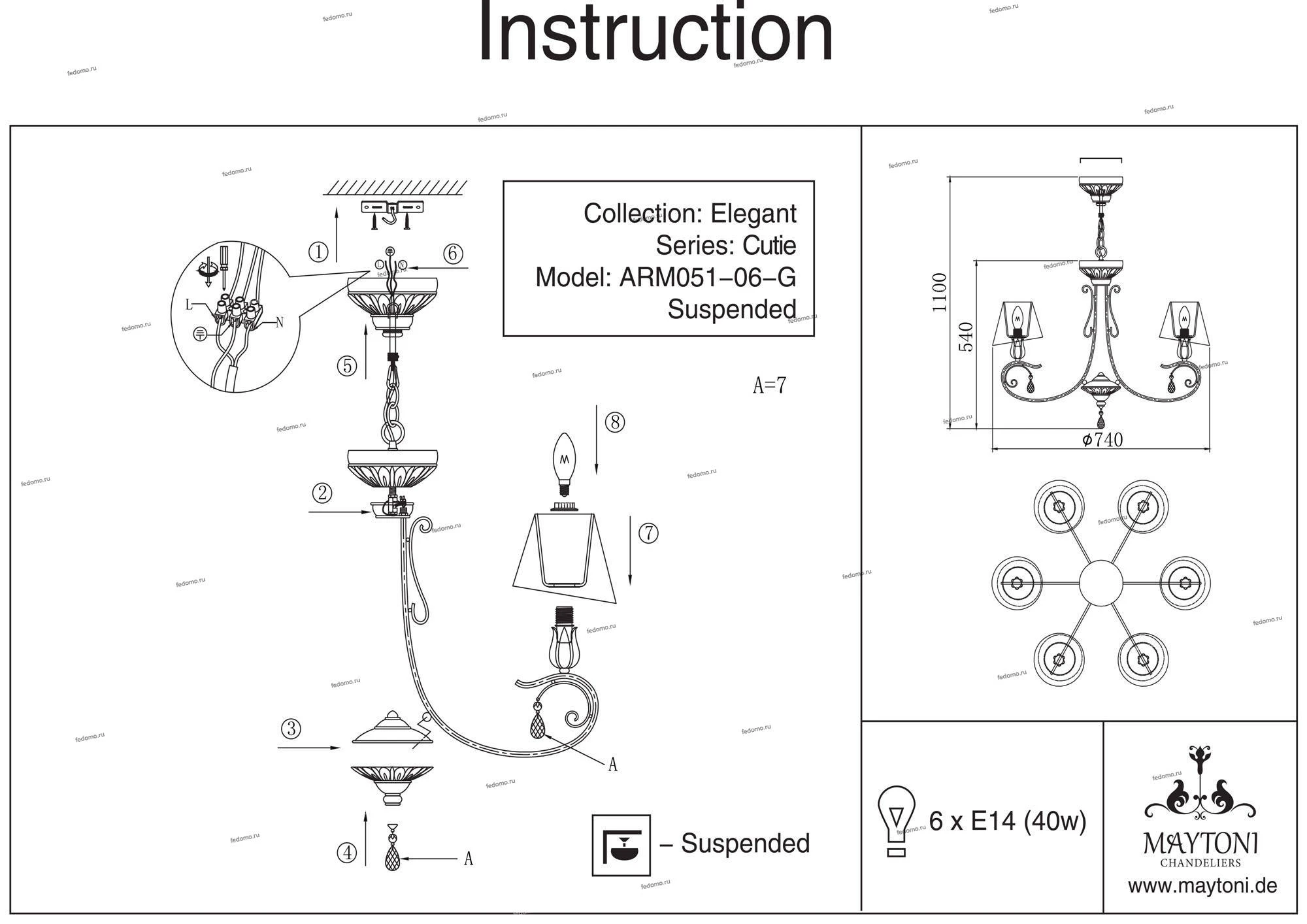 Люстра 2 в 1 потолочная и подвесная ARM051-06-G из серии Cutie от компании Maytoni устанавливается на монтажную пластину. Классическая люстра прекрасно подойдет в качестве источника основного света для гостиной, спальни, кухни, оформленных в стиле прованс. Основной цвет модели - розовый, материал арматуры - металл. Люстра имеет 6 абажуров, материал изготовления - ткань. Модель оснащена цоколем E14 (6xE14), имеет 6 лампочек с общей мощностью 240W и напряжением 220V. Светильник поддерживает подключение диммера. Габариты: высота - 1030 мм, диаметр - 740 мм, длина подвеса - 400 мм. Лампочки в комплект не входят. Лучшая цена и условия доставки на Maytoni ARM051-06-G в интернет-магазине Fedomo.ru.