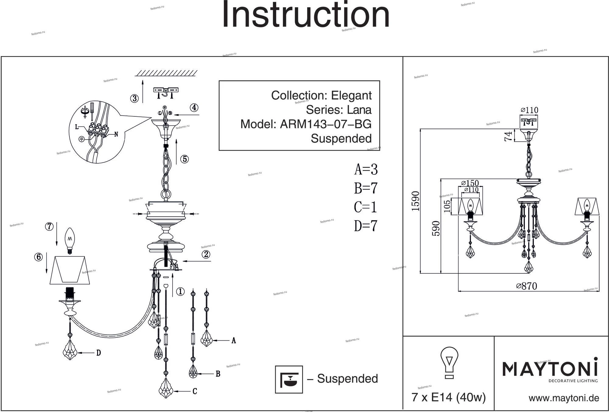 Люстра потолочная ARM143-07-BG из серии Lana от компании Maytoni устанавливается на металлический крюк или монтажную пластину. Классическая люстра прекрасно подойдет в качестве источника основного света для гостиной, прихожей и коридора, кафе, кабинета, оформленных в стиле прованс. Основной цвет модели - белый, материал арматуры - дерево. Люстра имеет 7 абажуров со свечением вверх, материал изготовления - матовая ткань, ПВХ. Модель оснащена цоколем E14 (7xE14), имеет 7 лампочек с общей мощностью 280W и напряжением 220V. Светильник поддерживает подключение диммера. Габариты: высота - 1510 мм, диаметр - 870 мм, длина подвеса - 1000 мм. Лампочки в комплект не входят. Лучшая цена и условия доставки на Maytoni ARM143-07-BG в интернет-магазине Fedomo.ru.
