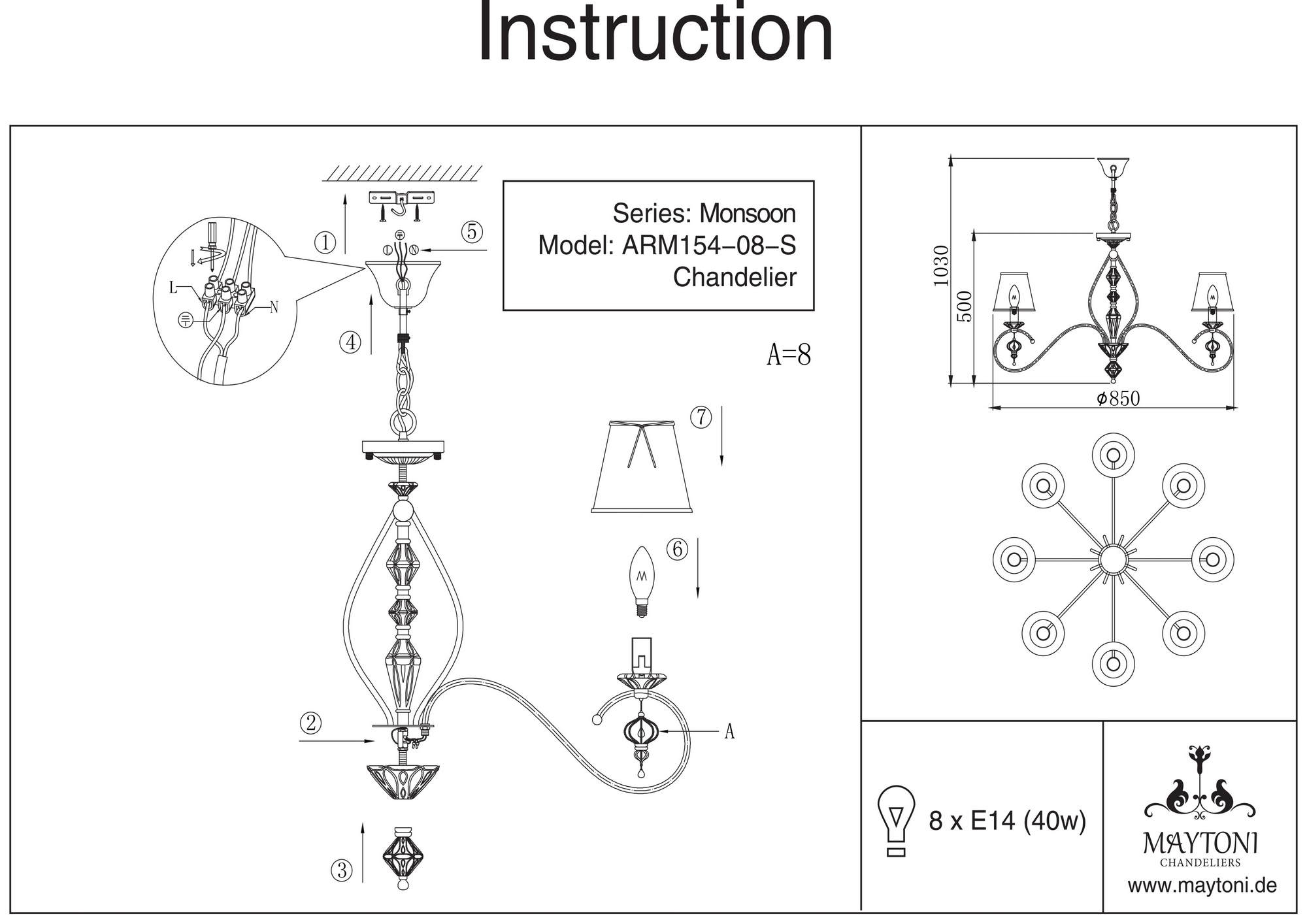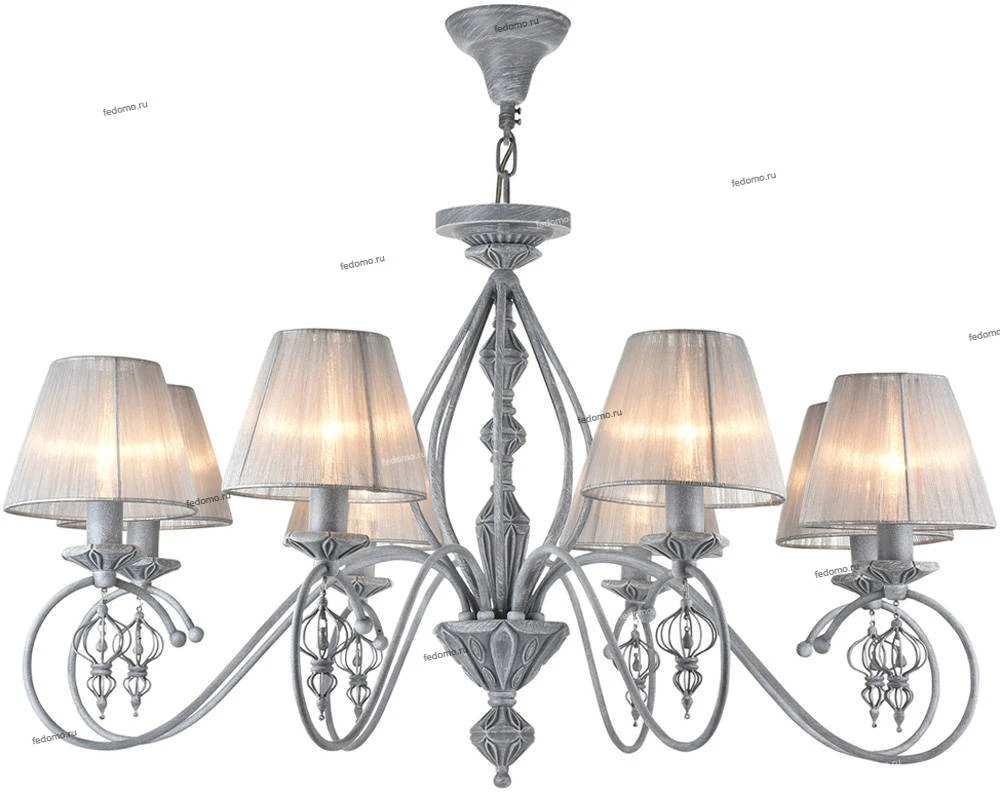 Люстра подвесная ARM154-08-S из серии Monsoon от компании Maytoni устанавливается на металлический крюк. Классическая люстра прекрасно подойдет в качестве источника основного света для гостиной, спальни, кабинета, оформленных в стиле прованс. Основной цвет модели - серый, материал арматуры - металл. Люстра имеет 8 абажуров, материал изготовления - ткань. Модель оснащена цоколем E14 (8xE14), имеет 8 лампочек с общей мощностью 320W и напряжением 220V. Светильник поддерживает подключение диммера. Габариты: высота - 1030 мм, диаметр - 850 мм, длина подвеса - 400 мм. Лампочки в комплект не входят. Лучшая цена и условия доставки на Maytoni ARM154-08-S в интернет-магазине Fedomo.ru.