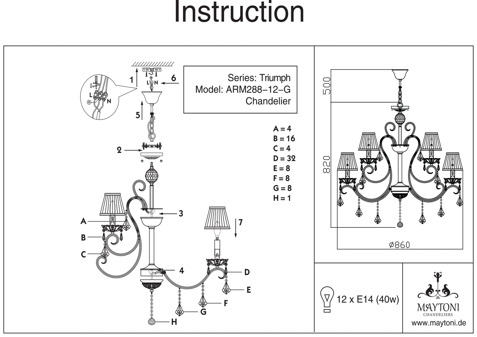 Люстра подвесная каскадная ARM288-12-G из серии Triumph от компании Maytoni устанавливается на металлический крюк или монтажную пластину. Классическая люстра прекрасно подойдет в качестве источника основного света для гостиной, холла, оформленных в стиле арт-деко, прованс. Основной цвет модели - белый, материал арматуры - металл. Люстра имеет 12 абажуров со свечением вверх, материал изготовления - ткань. Модель оснащена цоколем E14, имеет 12 лампочек с общей мощностью 480W и напряжением 220V. Светильник поддерживает подключение диммера. Габариты: высота - 1320 мм, диаметр - 860 мм. Лучшая цена и условия доставки на Maytoni ARM288-12-G в интернет-магазине Fedomo.ru.