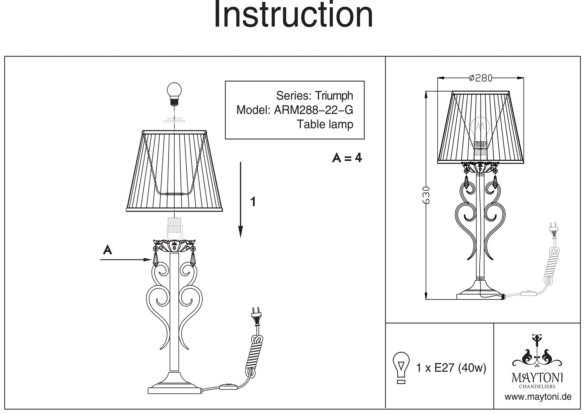 Интерьерная настольная лампа ARM288-22-G из серии Triumph от компании Maytoni будет удачно смотреться на столе в гостиной, спальне, оформленных в стиле модерн, арт-деко. Интерьерная лампа имеет 1 абажур и 1 лампочку с цоколем E27, мощностью 60W и напряжением 220V. Модель устанавливается на основание, есть возможность подключения диммера. Основной материал и цвет арматуры - бежевый металл, материал абажура - ткань. Габариты изделия: высота - 630 мм. Лампочки в комплект не входят. Лучшая цена и условия доставки на Maytoni ARM288-22-G в интернет-магазине Fedomo.ru.