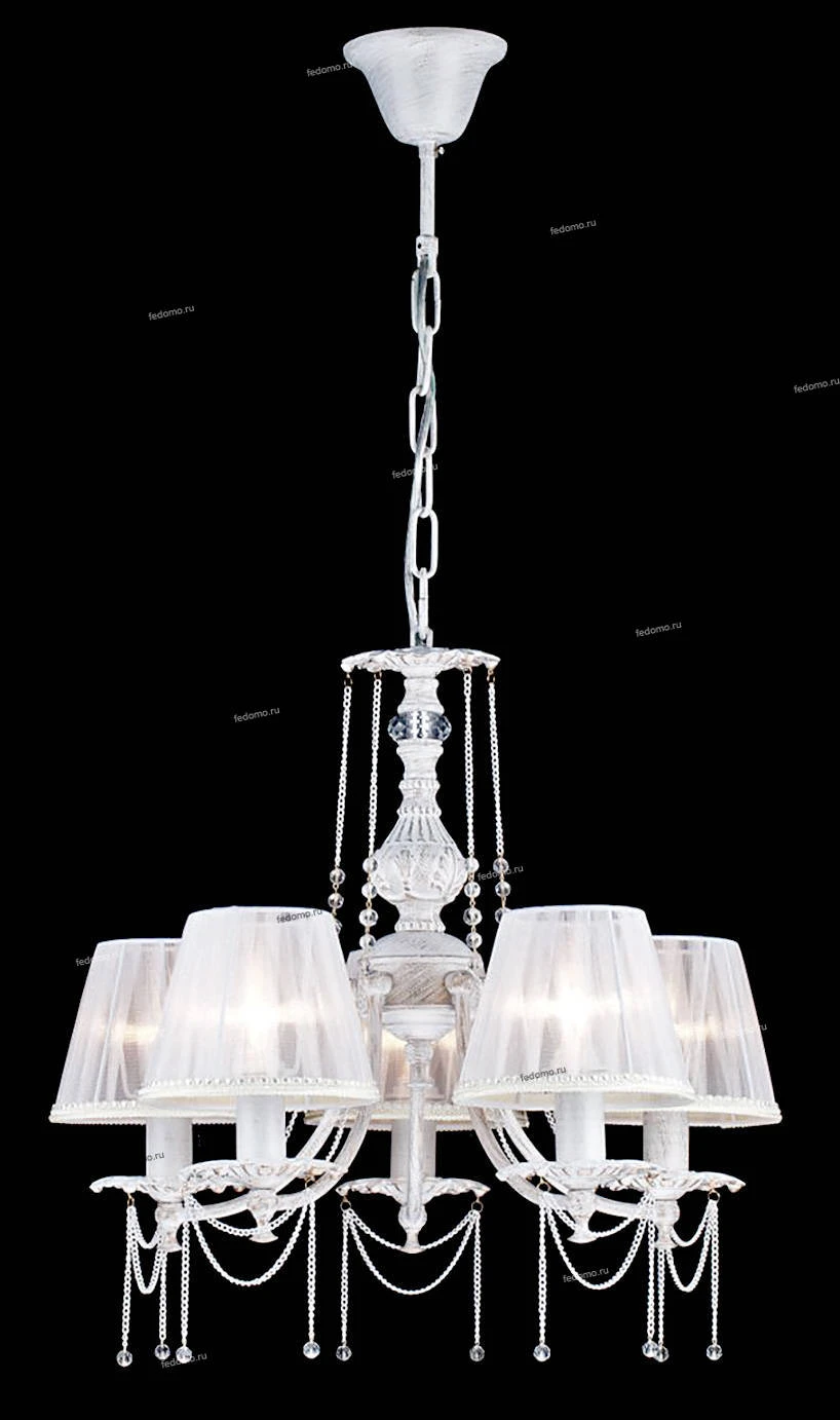 Люстра подвесная ARM305-05-W из серии Lolita от компании Maytoni устанавливается на металлический крюк. Классическая люстра украшена хрусталем и прекрасно подойдет в качестве источника основного света для гостиной, спальни, кухни, кабинета, оформленных в стиле прованс. Основной цвет модели - белый, материал арматуры - металл. Люстра имеет 5 абажуров со свечением вверх, материал изготовления - прозрачная ткань. Модель оснащена цоколем E14 (5xE14), имеет 5 лампочек с общей мощностью 300W и напряжением 220V. Светильник поддерживает подключение диммера. Габариты: высота - 1000 мм, диаметр - 500 мм. Лампочки в комплект не входят. Лучшая цена и условия доставки на Maytoni ARM305-05-W в интернет-магазине Fedomo.ru.