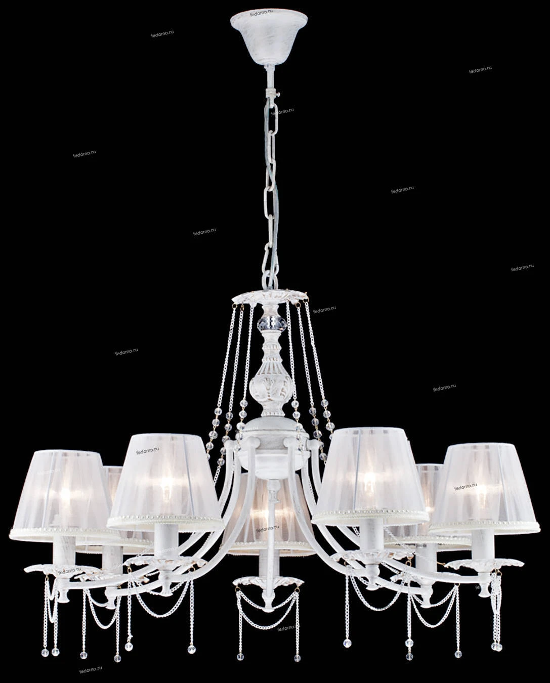 Люстра подвесная ARM305-07-W из серии Lolita от компании Maytoni устанавливается на металлический крюк. Классическая люстра украшена хрусталем и прекрасно подойдет в качестве источника основного света для гостиной, спальни, кухни, кабинета, оформленных в стиле прованс. Основной цвет модели - белый, материал арматуры - металл. Люстра имеет 7 абажуров со свечением вверх, материал изготовления - прозрачная ткань. Модель оснащена цоколем E14 (7xE14), имеет 7 лампочек с общей мощностью 420W и напряжением 220V. Светильник поддерживает подключение диммера. Габариты: высота - 1070 мм, диаметр - 740 мм. Лампочки в комплект не входят. Лучшая цена и условия доставки на Maytoni ARM305-07-W в интернет-магазине Fedomo.ru.