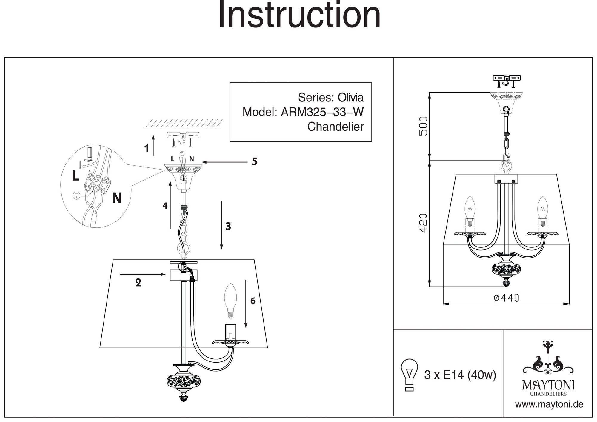 Люстра подвесная ARM325-33-W из серии Olivia от компании Maytoni регулируется по высоте и устанавливается на металлический крюк. Классическая люстра прекрасно подойдет в качестве источника основного света для гостиной, спальни, оформленных в стиле прованс, ар нуво. Основной цвет модели - зеленый, материал арматуры - металл. Люстра имеет 1 абажур со свечением вверх, материал изготовления - матовая ткань. Модель оснащена цоколем E14 (3xE14), имеет 3 лампочки с общей мощностью 180W и напряжением 220V. Светильник поддерживает подключение диммера. Габариты: высота - 920 мм, диаметр - 440 мм. Лампочки в комплект не входят. Лучшая цена и условия доставки на Maytoni ARM325-33-W в интернет-магазине Fedomo.ru.