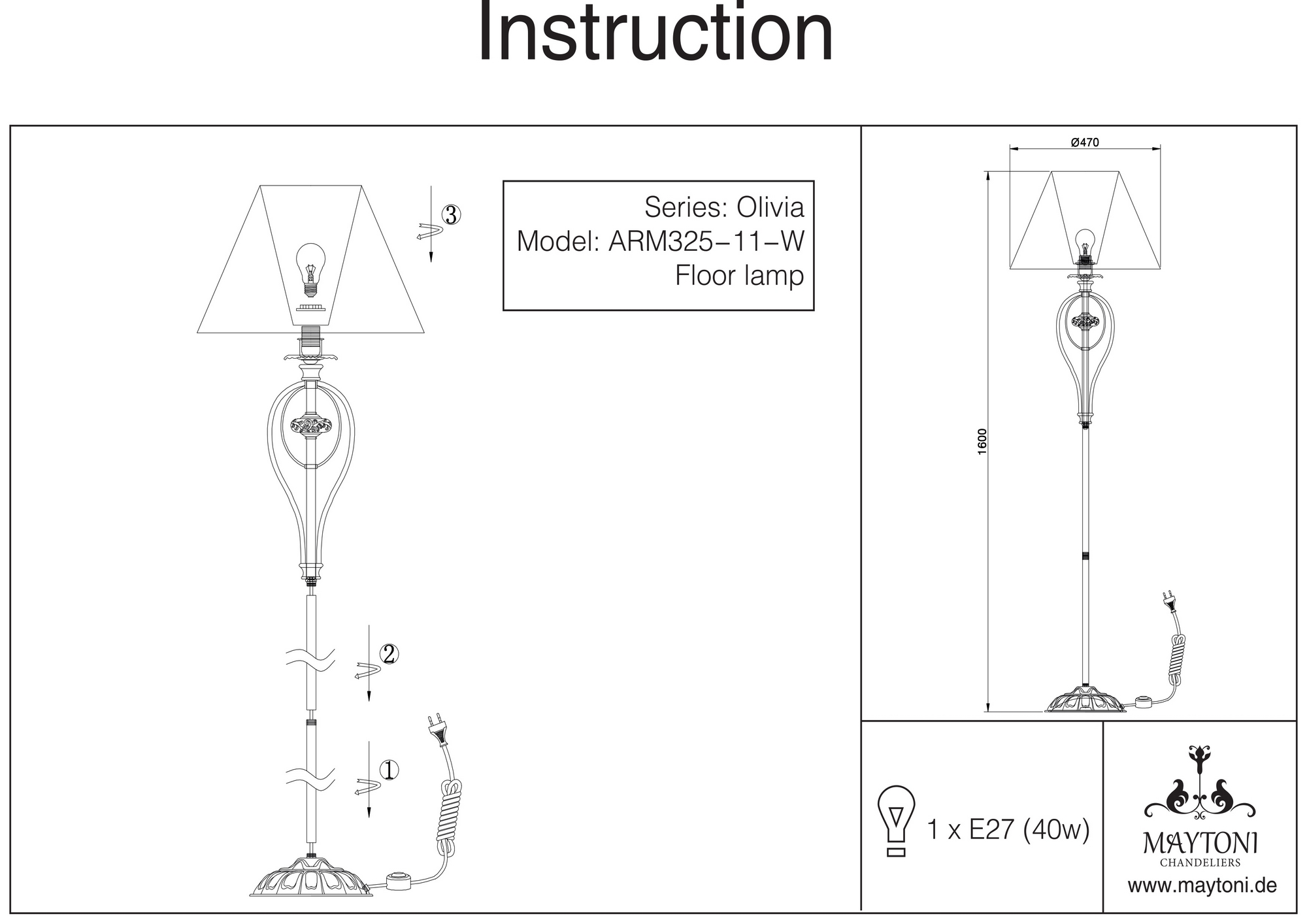Торшер ARM326-11-W из серии Olivia от компании Maytoni будет удачно смотреться на полу в гостиной, спальне, кабинете, оформленных в классическом стиле. Торшер имеет 1 абажур и 1 лампочку с цоколем E27, мощностью 40W и напряжением 220V. Модель устанавливается на основание, есть возможность подключения диммера. Основной материал и цвет арматуры - бежевый металл, материал абажура - ткань. Габариты изделия: ширина - 470 мм, высота - 1600 мм. Лампочки в комплект не входят. Лучшая цена и условия доставки на Maytoni ARM326-11-W в интернет-магазине Fedomo.ru.
