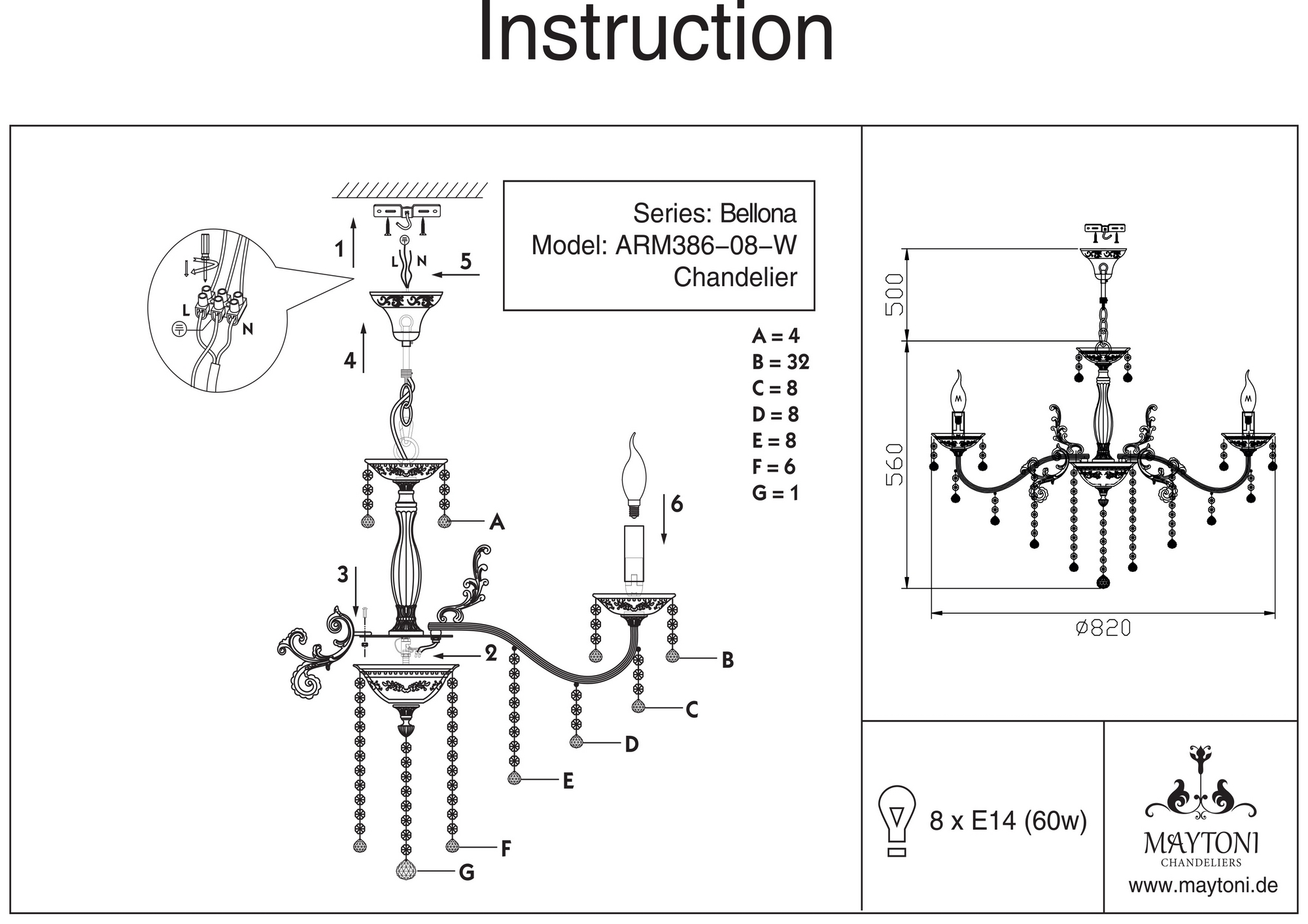 Люстра подвесная ARM386-08-W из серии Bellona от компании Maytoni устанавливается на металлический крюк. Классическая люстра в виде подсвечника прекрасно подойдет в качестве источника основного света для гостиной, спальни, кабинета, оформленных в стиле барокко. Основной цвет модели - белый, материал арматуры - металл. Модель оснащена цоколем E14, имеет 8 лампочек с общей мощностью 480W и напряжением 220V. Светильник поддерживает подключение диммера. Габариты: высота - 1060 мм, диаметр - 820 мм. Лучшая цена и условия доставки на Maytoni ARM386-08-W в интернет-магазине Fedomo.ru.