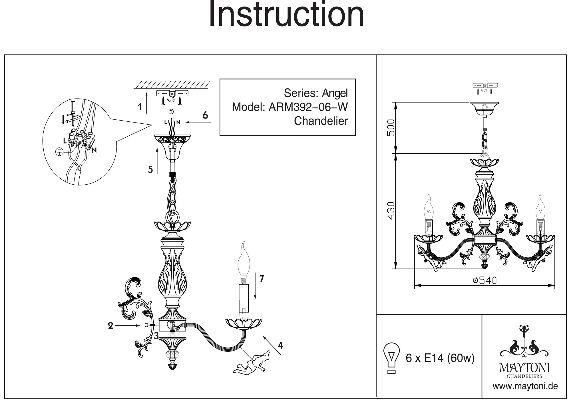 Люстра подвесная ARM392-06-W из серии Elegant 44 от компании Maytoni устанавливается на металлический крюк. Классическая люстра в виде подсвечника с феями прекрасно подойдет в качестве источника основного света для спальни, кабинета, оформленных в стиле прованс. Основной цвет модели - белый, материал арматуры - металл. Модель оснащена цоколем E14, имеет 6 лампочек с общей мощностью 360W и напряжением 220V. Светильник поддерживает подключение диммера. Габариты: диаметр - 540 мм. Лучшая цена и условия доставки на Maytoni ARM392-06-W в интернет-магазине Fedomo.ru.