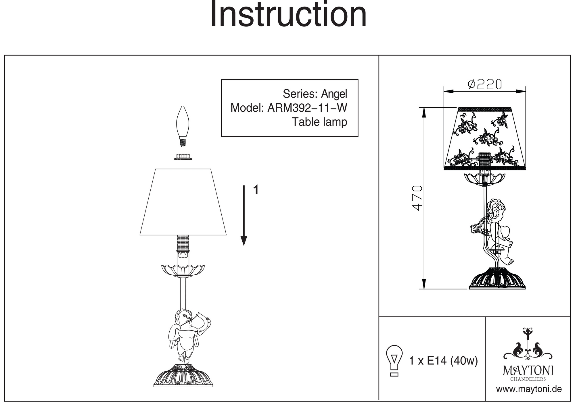 Интерьерная настольная лампа ARM392-11-W из серии Elegant 44 от компании Maytoni будет удачно смотреться на столе в гостиной, спальне, оформленных в стиле модерн, арт-деко. Интерьерная лампа с ангелами имеет 1 абажур и 1 лампочку с цоколем E14, мощностью 40W и напряжением 220V. Модель устанавливается на основание, есть возможность подключения диммера. Основной материал и цвет арматуры - белый металл, материал абажура - ткань. Габариты изделия: высота - 470 мм. Лампочки в комплект не входят. Лучшая цена и условия доставки на Maytoni ARM392-11-W в интернет-магазине Fedomo.ru.