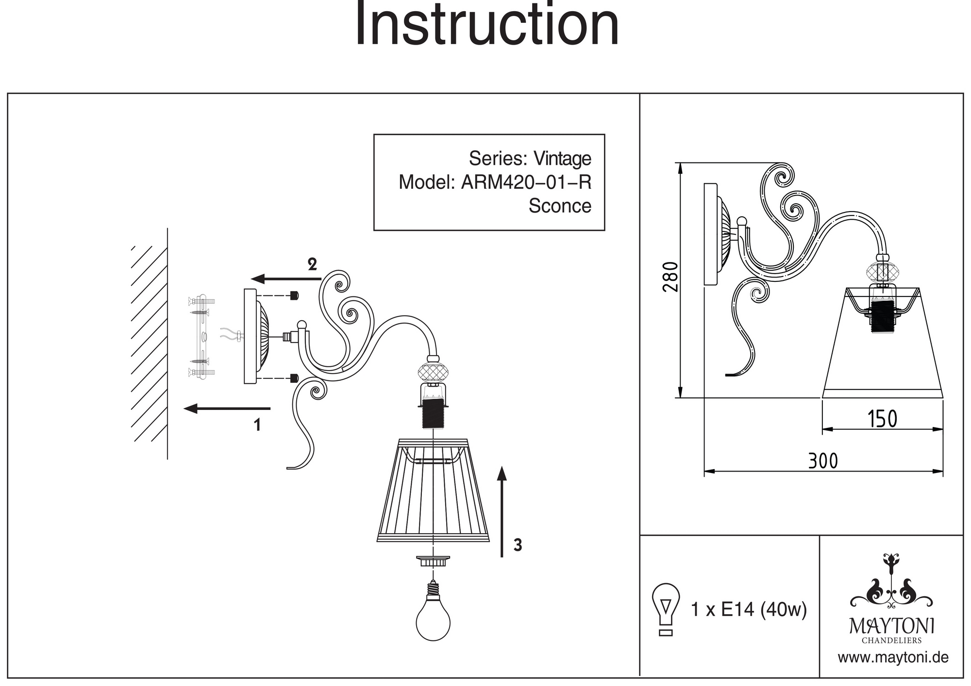 Бра ARM420-01-R из серии Vintage от компании Maytoni отлично подойдет в качестве дополнительного источника света для гостиной, прихожей и коридора, спальни, кабинета, выполненных в стиле классический, модерн. Основной цвет модели - белый, материал арматуры - металл. Однорожковое бра имеет 1 лампочку, оснащено цоколем E14 с общей мощностью 60W и напряжением 220V. Абажур направлен вниз, материал изготовления - ткань. Светильник поддерживает подключение диммера. Бра устанавливается на монтажную пластину. Лампочки в комплект не входят. Лучшая цена и условия доставки на Maytoni ARM420-01-R в интернет-магазине Fedomo.ru.