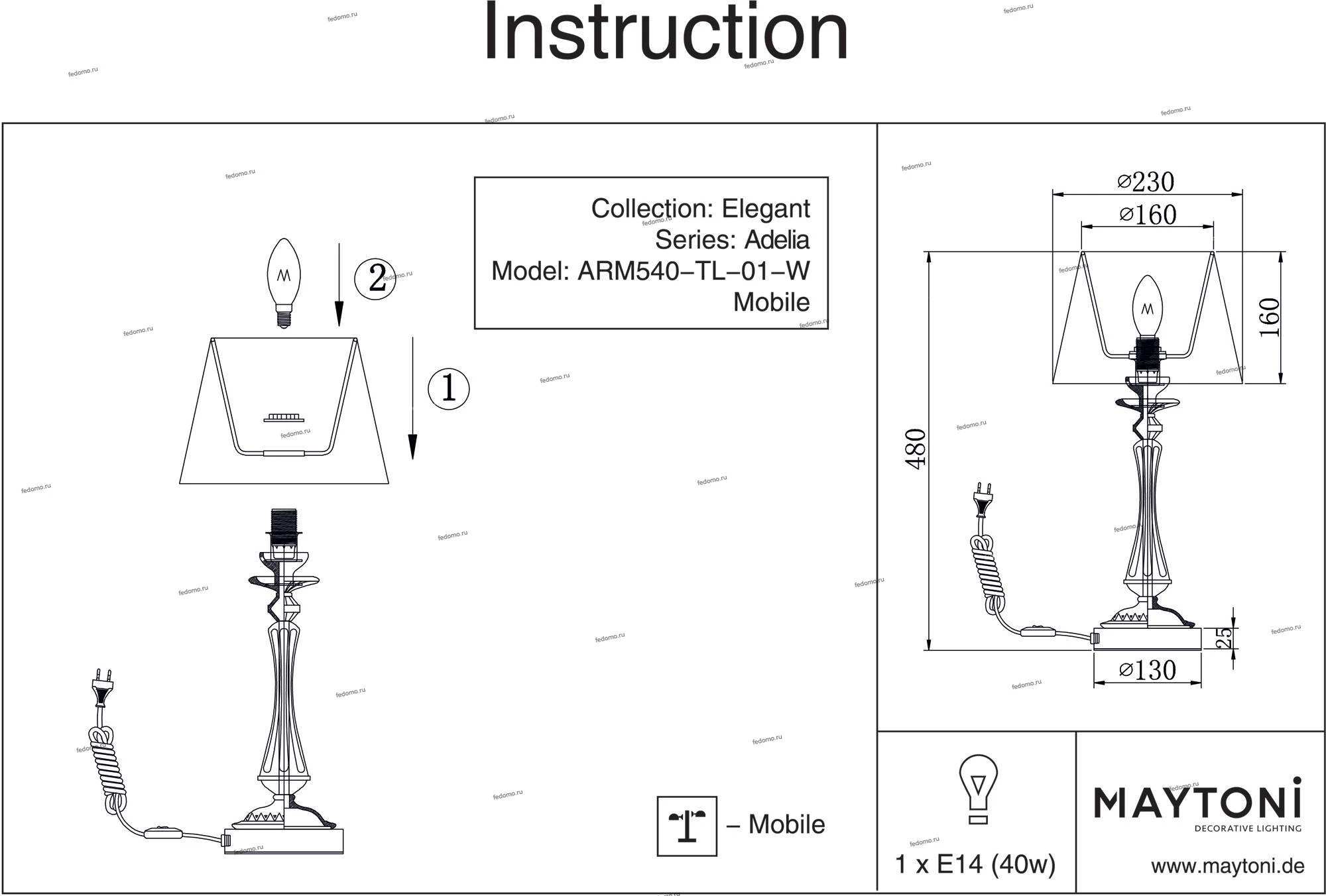 Интерьерная настольная лампа ARM540-TL-01-W из серии Adelia от компании Maytoni будет удачно смотреться на столе в гостиной, спальне, оформленных в стиле прованс. Интерьерная лампа имеет 1 абажур и 1 лампочку с цоколем E14, мощностью 40W и напряжением 220V. Модель устанавливается на основание, есть возможность подключения диммера. Основной материал и цвет арматуры - белый металл, материал абажура - ткань. Габариты изделия: высота - 480 мм. Лампочки в комплект не входят. Лучшая цена и условия доставки на Maytoni ARM540-TL-01-W в интернет-магазине Fedomo.ru.