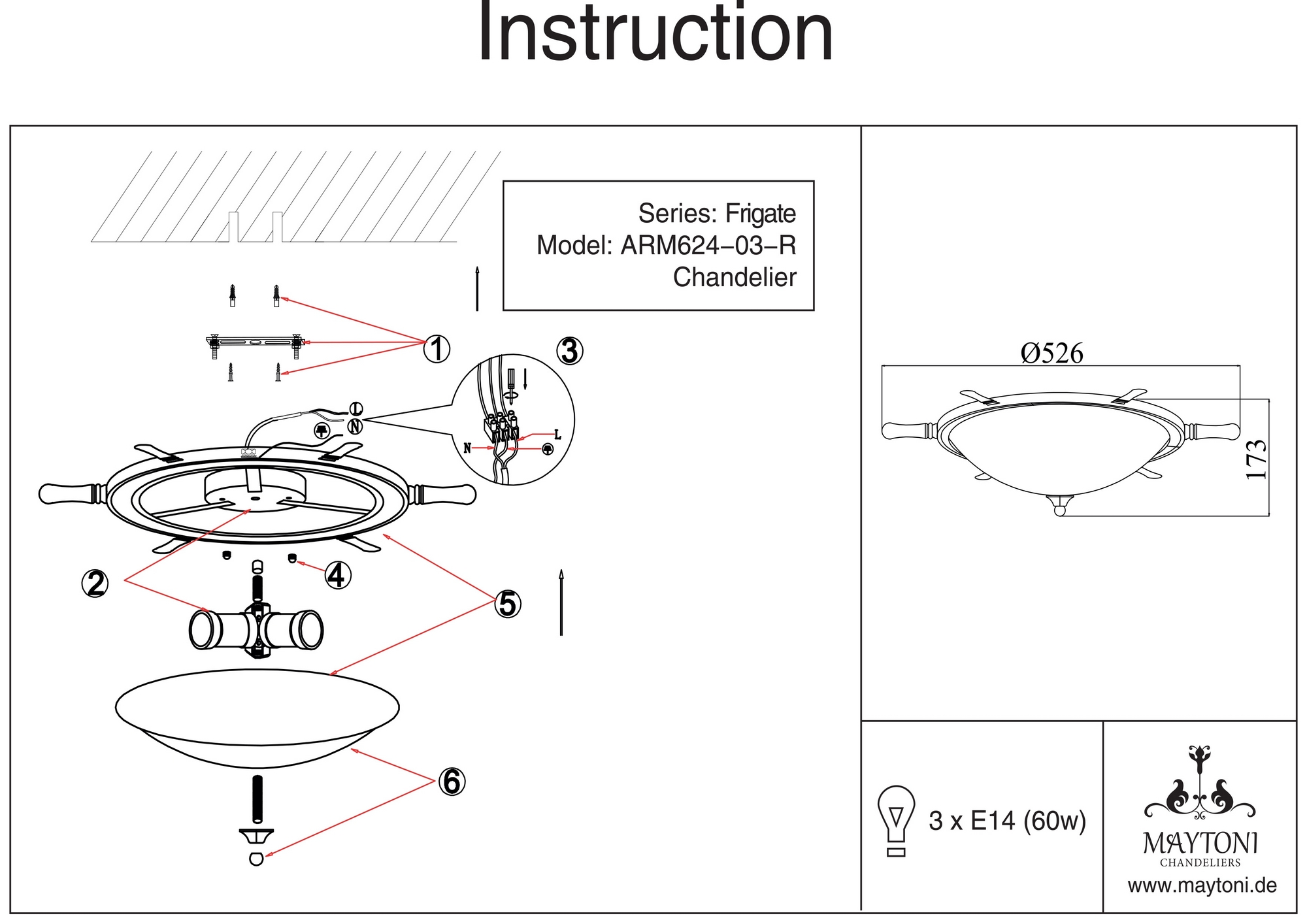 Круглый потолочный светильник ARM624-03-R из серии Maytoni Frigate от компании Maytoni подойдет для освещения прихожей и коридора, кабинета, оформленных в стиле классический, морской. Основной цвет изделия - белый, материал плафона - стекло. Рассчитан на 3 лампочки с цоколем E14 и освещает площадь до 9 кв. м. Модель поддерживает установку диммера. Лучшая цена и условия доставки на Maytoni Frigate ARM624-03-R в интернет-магазине Fedomo.ru.