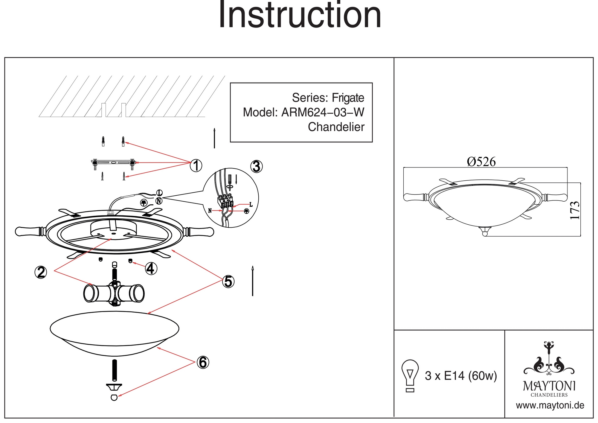 Круглый потолочный светильник ARM624-03-W из серии Maytoni Frigate от компании Maytoni подойдет для освещения прихожей и коридора, кабинета, оформленных в стиле классический, морской. Основной цвет изделия - белый, материал плафона - стекло. Рассчитан на 3 лампочки с цоколем E14 и освещает площадь до 9 кв. м. Модель поддерживает установку диммера. Лучшая цена и условия доставки на Maytoni Frigate ARM624-03-W в интернет-магазине Fedomo.ru.