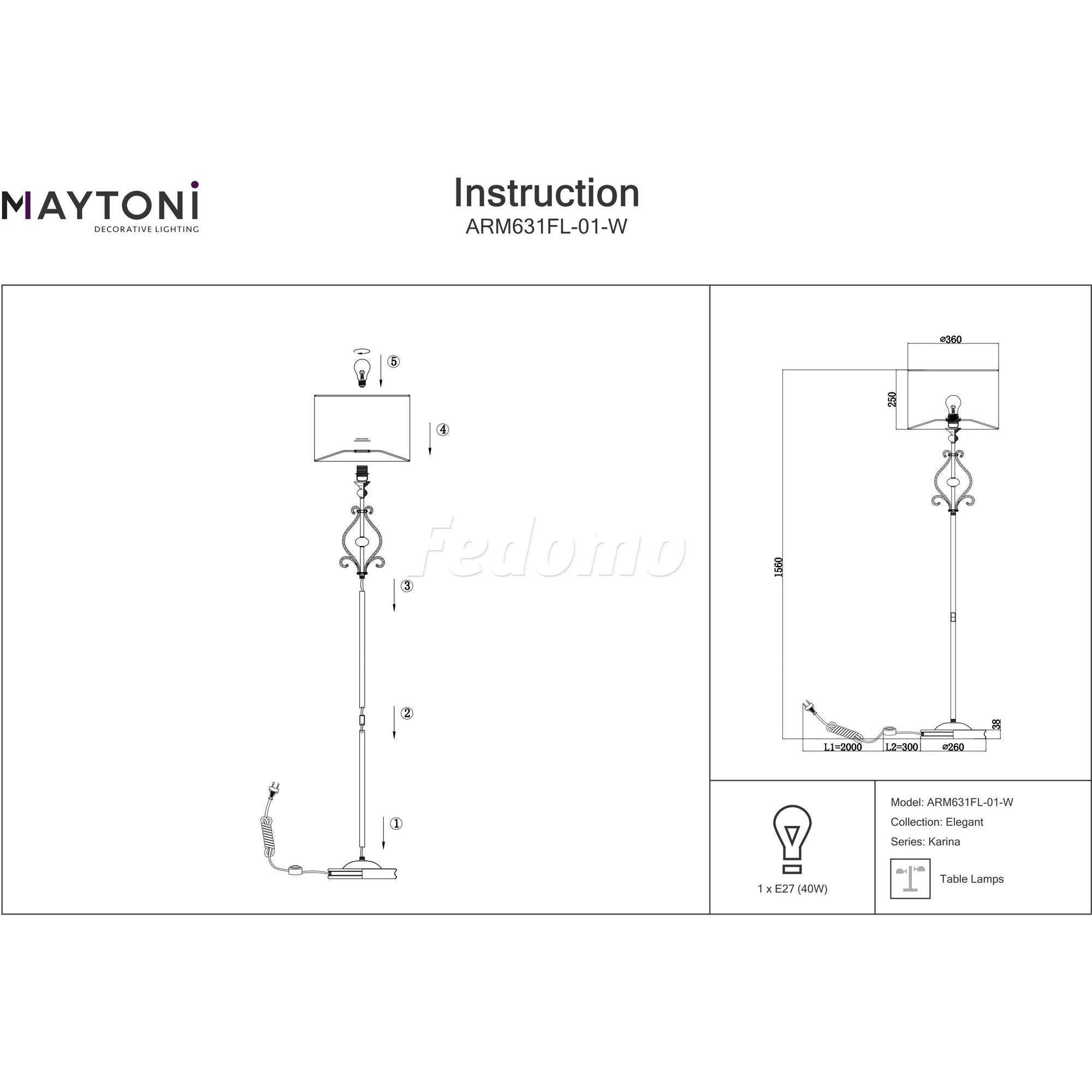 Торшер ARM631FL-01-W из серии Karina от компании Maytoni будет удачно смотреться на полу в гостиной, спальне, оформленных в классическом стиле. Торшер имеет 1 абажур и 1 лампочку с цоколем E27, мощностью 40W и напряжением 220V. Модель устанавливается на основание, есть возможность подключения диммера. Основной материал и цвет арматуры - белый металл, материал абажура - ткань. Торшер оборудован ножным выключателем. Габариты изделия: высота - 1560 мм. Лампочки в комплект не входят. Лучшая цена и условия доставки на Maytoni ARM631FL-01-W в интернет-магазине Fedomo.ru.