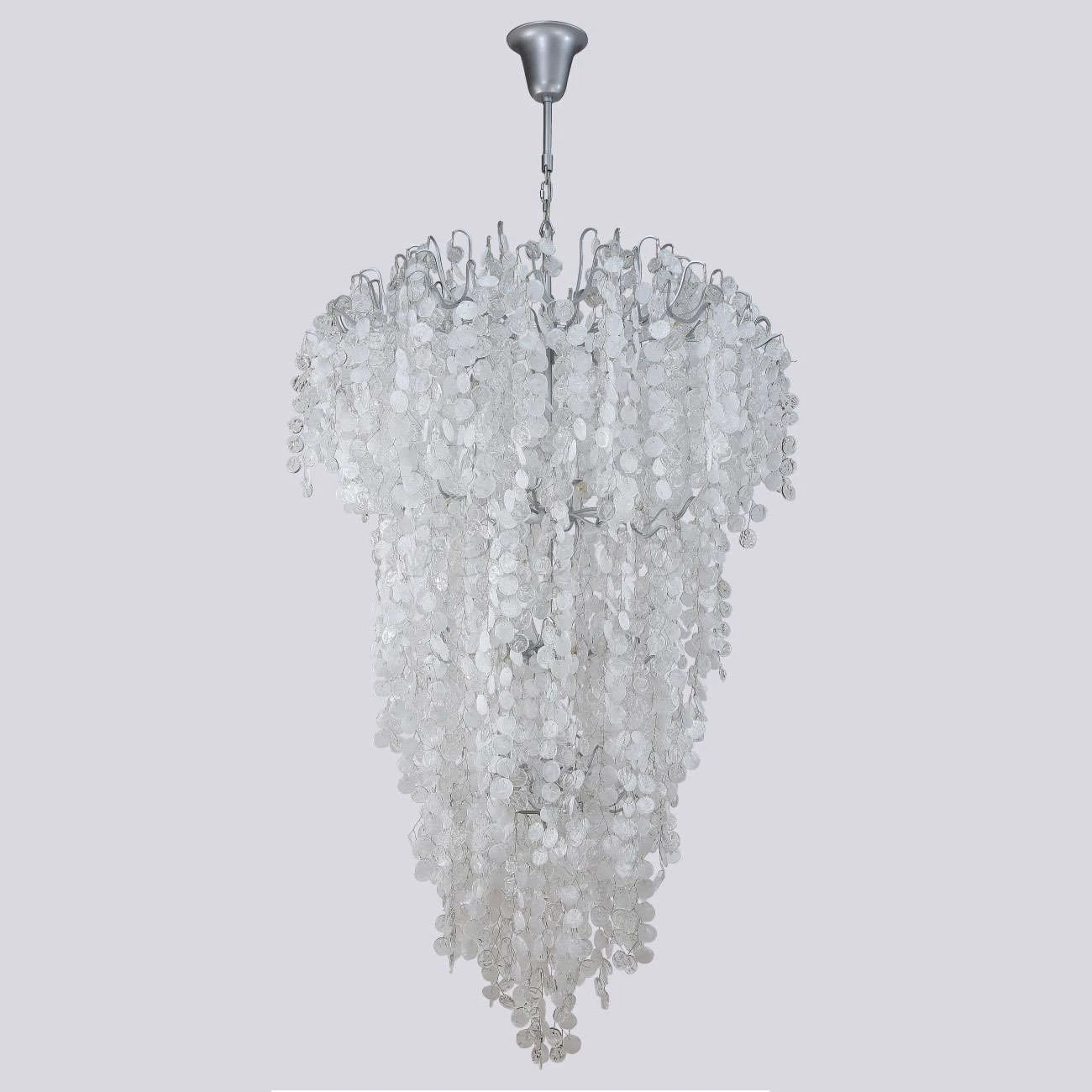 Конструкция подвесной люстры позволяет регулировать высоту изменением количества звеньев цепи. Звенья в цепи подвеса можно убирать и добавлять. Минимально можно оставить одно звено в цепи, которое будет соединять корпус и верхнюю чашку крепления светильника к потолку. Уменьшив количество звеньев до одного, светильник будет закреплен максимально близко к потолку и внешне будет похож на потолочный.