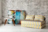Бескаркасный диван Dreambag PuzzleBag Скандинавия Желто-Серый XL 4924100