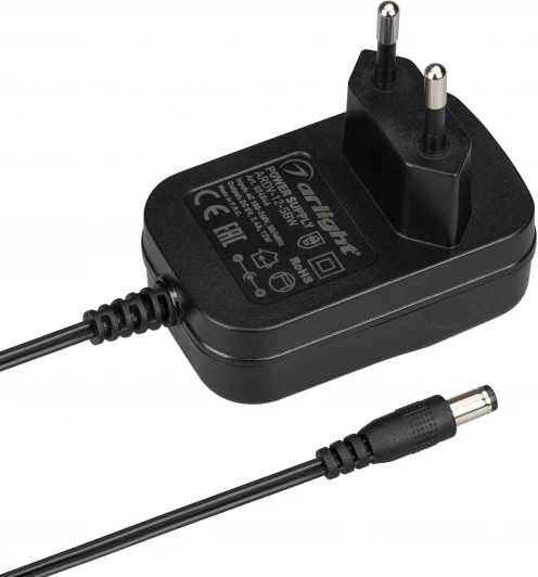 Сетевой адаптер с гальванической развязкой для светодиодных изделий 5 В (черный корпус). Мощность 12 Вт. Вход:100-240VAC, Выход: DC 5V 2.4 A, длина кабеля 1.5 м., коннектор 5.5x2.1x10мм. Размер 58x37x24мм (размер без вилки). Гарантия 3 года.