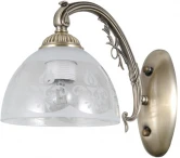 Актуальный цвет античной бронзы. Классический дизайн в дворцовом стиле. Стеклянный плафон вниз с растительным орнаментом в тренде. Заменяемый источник света удобен в эксплуатации. Основание вертикального настенного бра выполнено из комбинации сплавов металлов и гальванизировано в цвет античной бронзы. Корпус выполнен из металла по технологии прессования. Рожки выполнены из сплава алюминия с цинком по технологии художественного литья. Настенное бра вниз декорировано стеклянным плафоном, матированным по трафарету.
