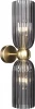 Металлическая арматура в цвете золота. Плафоны стеклянные нескольких цветов: коньячный, дымчатый, белый, серый. Источник света: цоколь Е14. Высота регулируется сегментами штанги или с помощью трехметрового провода. Серия применима в помещениях с высокими потолками. Поверхность стеклянных плафонов рифленая, усиливающая световые эффекты.
