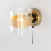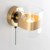 Основание металлическое, круглой формы, цвет бронза с декоративными чёрными элементами. На корпусе расположен удобный выключатель. Модель с одним плафоном, изготовленным из прозрачного стекла с декоративной бронзовой полосой. В светильнике используется 1 лампа с цоколем Е14, форма колбы шарик, максимальная мощность для ламп накаливания 60Вт