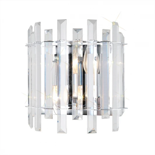 Citilux Ингвар CL334321 в современном стиле. Корпус металлический, цвет хром. Модель украшена прозрачными хрустальными элементами с модной огранкой «призма». В изделии используются две лампы с цоколем Е14, максимальной мощностью для ламп накаливания 60Вт. Светодиодные лампы можно использовать более яркие. Запасное стекло: 334.11.200 Хрусталь, 334.11.250 Хрусталь