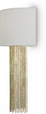 Арматура из нержавеющей стали. Цвет – золото. Абажур – белая ткань. Декоративные цепочки в тон арматуре. Тканевый рассеиватель смягчает световой поток. Источники света – лампы с цоколем Е14.