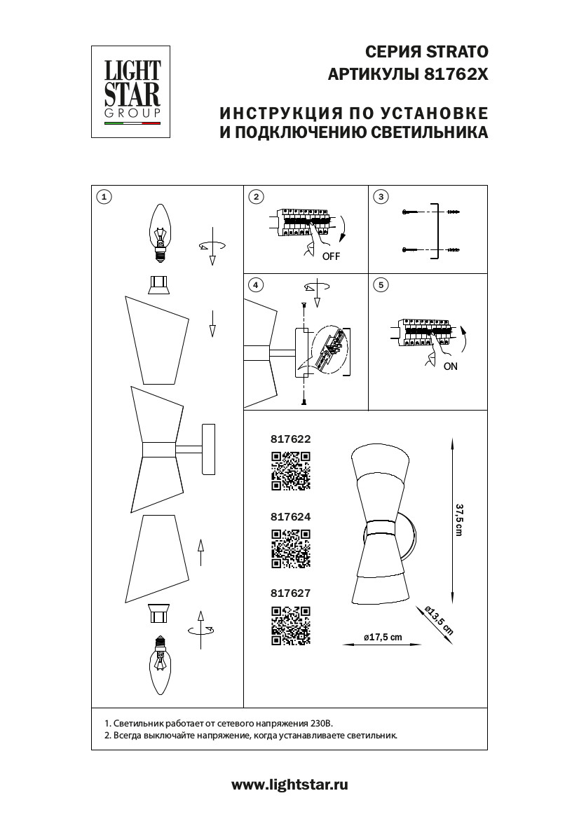 Бра Lightstar Strato 817627 от итальянского производителя Lightstar исполнено в черном цвете из металла. Модель имеет 2 плафона из стекла и металла и подходит для размещения на стене в гостиной, прихожей и коридоре, спальне, кабинете, офисе в стиле арт-деко. Лампочки с цоколем 2xE14 обладают мощностью 80W и освещают площадь до 4 кв. м. Питание от сети 220V. Дополнительные опции: возможность подключения диммера. Монтаж производится на пластину. Длина — 200 мм, ширина — 135 мм, высота — 375 мм. Заказывайте Lightstar 817627 онлайн по низкой цене с гибкими условиями доставки на Fedomo.ru!