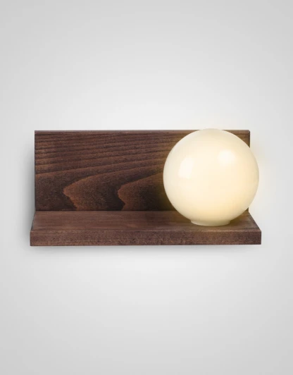 Функциональное сочетание — настенный светильник, который представляет собой не только осветительный прибор в виде бра, но также, за счёт удлиненного основания, служит полочкой, где можно расположить ваш любимый декор, телефон, или другие предметы небольшого размера. Эко - изделие из натурального дерева бука и изысканным стеклянным плафоном, украсит интерьер комнат в любом стиле. Также, мы позаботились о том, чтобы вы могли организовать своё пространство максимально гармонично! Поэтому, модель создана в двух вариантах на выбор — с плафоном на правой или левой стороне полочки. А чтобы добавить изюминку, можно вставить цветные лампочки вместо обычных. Это удачное решение здорово преобразит интерьер и добавит немного волшебства и красок! Изделие 6426-Right-1W представлено в трёх цветах.