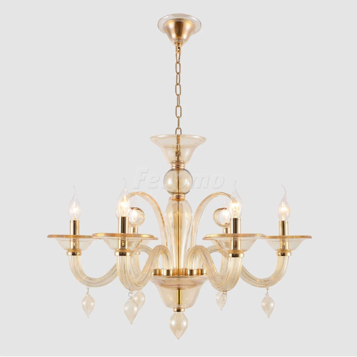 Люстра подвесная Crystal Lux Caetano, 6 ламп, золото с янтарным