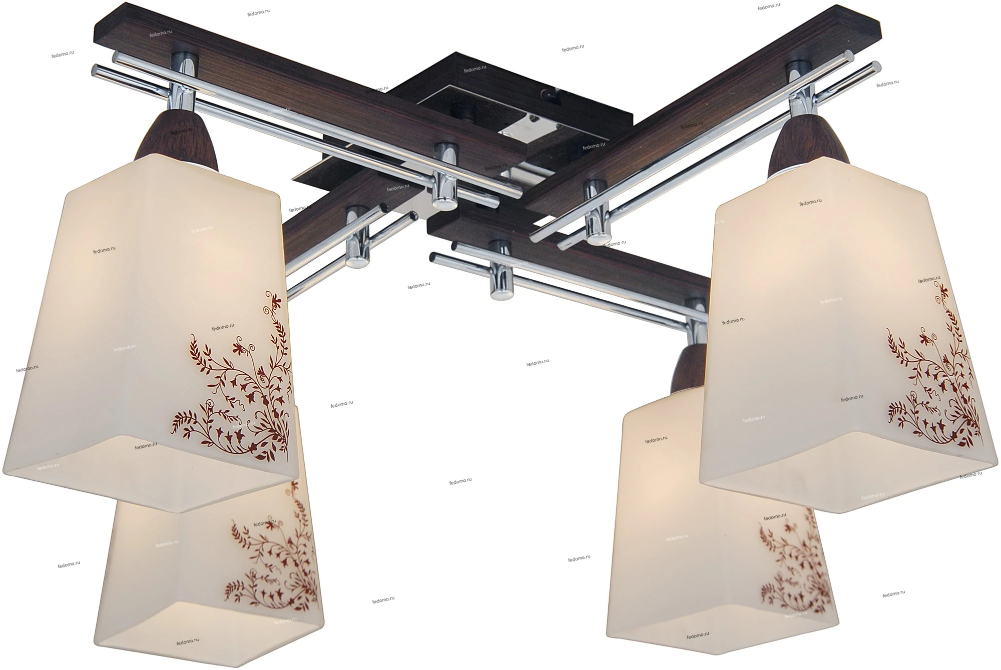 Люстра потолочная венге CL145141 из серии Kreol от компании Citilux устанавливается на монтажную пластину. Люстра с цветами прекрасно подойдет в качестве источника основного света для гостиной, спальни, кухни, кабинета, оформленных в стиле модерн, флористика. Основной цвет модели - белый, материал арматуры - металл, дерево. Люстра имеет 4 плафона со свечением вниз, материал изготовления - матовое стекло. Модель оснащена цоколем E27 (4xE27), имеет 4 лампочки с общей мощностью 300W и напряжением 220V. Светильник поддерживает подключение диммера. Габариты: длина - 500 мм, ширина - 500 мм, высота - 210 мм. Лампочки в комплект не входят. Лучшая цена и условия доставки на Citilux CL145141 в интернет-магазине Fedomo.ru.