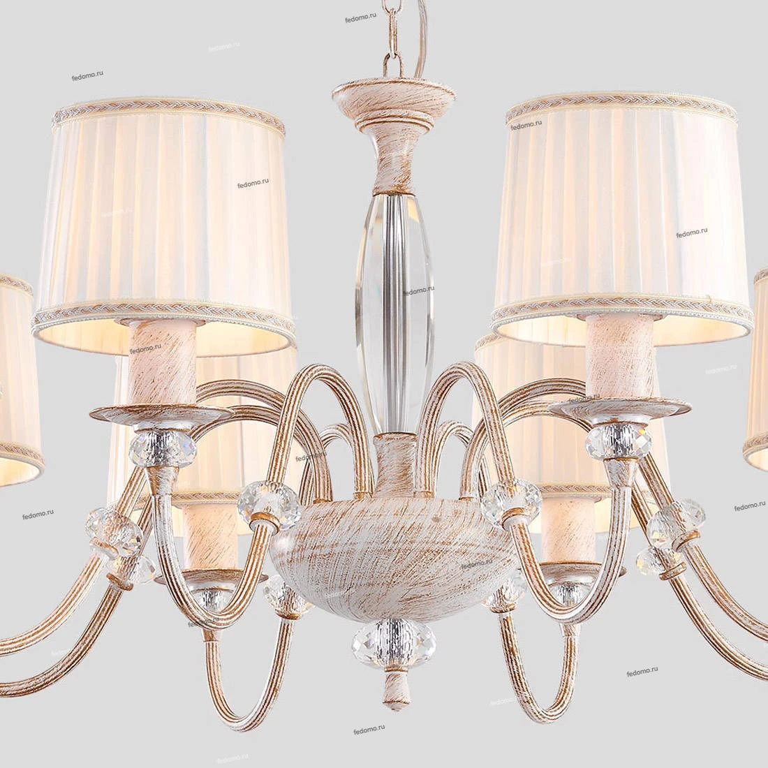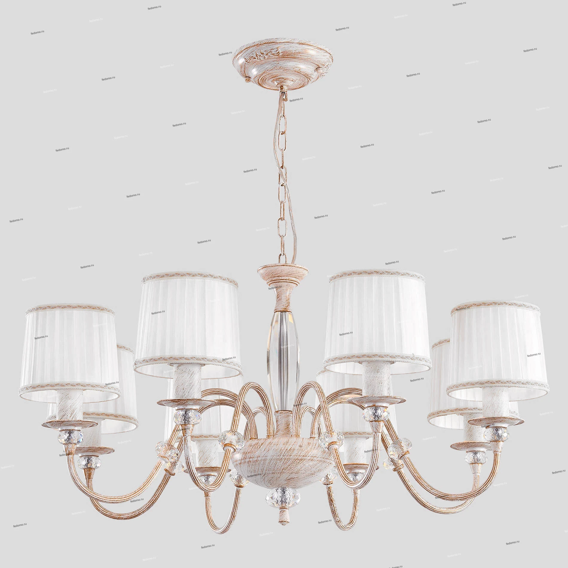 Люстра подвесная CL429181 из серии Дижон от компании Citilux регулируется по высоте и устанавливается на монтажную пластину. Классическая люстра прекрасно подойдет в качестве источника основного света для гостиной, спальни, оформленных в стиле прованс. Основной цвет модели - белый, материал арматуры - металл. Люстра имеет 8 абажуров со свечением вверх, материал изготовления - матовая ткань. Модель оснащена цоколем E27 (8xE27), имеет 8 лампочек с общей мощностью 600W и напряжением 220V. Светильник поддерживает подключение диммера. Габариты: диаметр - 900 мм. Лампочки в комплект не входят. Лучшая цена и условия доставки на Citilux CL429181 в интернет-магазине Fedomo.ru.