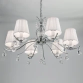 Люстра подвесная CL438161 из серии Шелли от компании Citilux регулируется по высоте и устанавливается на металлический крюк. Классическая люстра украшена хрусталем и прекрасно подойдет в качестве источника основного света для гостиной, спальни, кухни, кабинета. Основной цвет модели - белый, материал арматуры - металл. Люстра имеет 6 абажуров со свечением вверх, материал изготовления - матовая ткань. Модель оснащена цоколем E14 (6xE14), имеет 6 лампочек с общей мощностью 240W и напряжением 220V. Светильник поддерживает подключение диммера. Габариты: диаметр - 750 мм. Лампочки в комплект не входят. Лучшая цена и условия доставки на Citilux CL438161 в интернет-магазине Fedomo.ru.