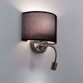 Светильник комбинирует общий и направленный свет с их раздельным включением, Основное назначение - прикроватный светильник, Диммированая лампа Е14*60Вт для общего света, Светодиодная лампа 3Вт теплого света (ЦТ=3000К) с регулировкой положения - для чтения