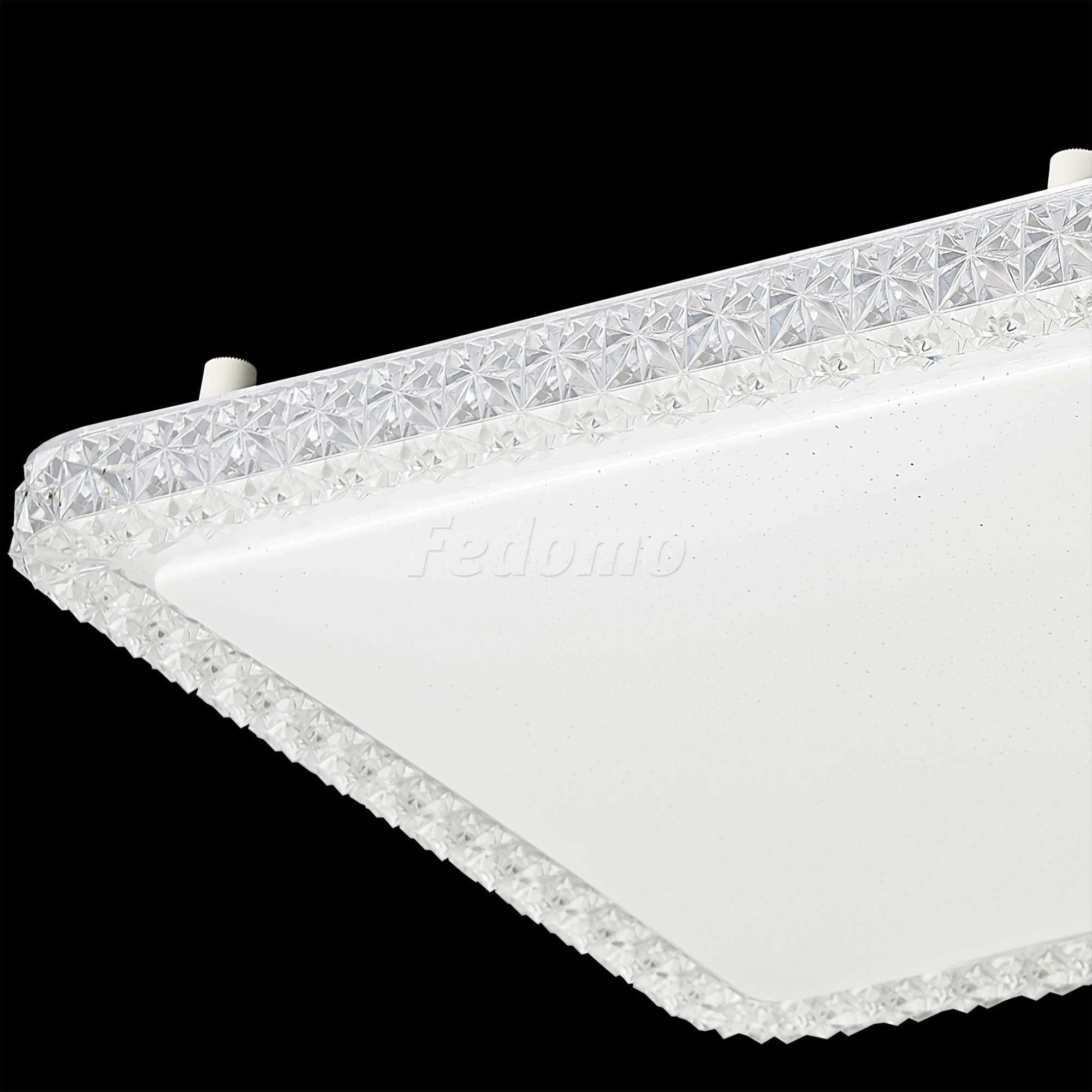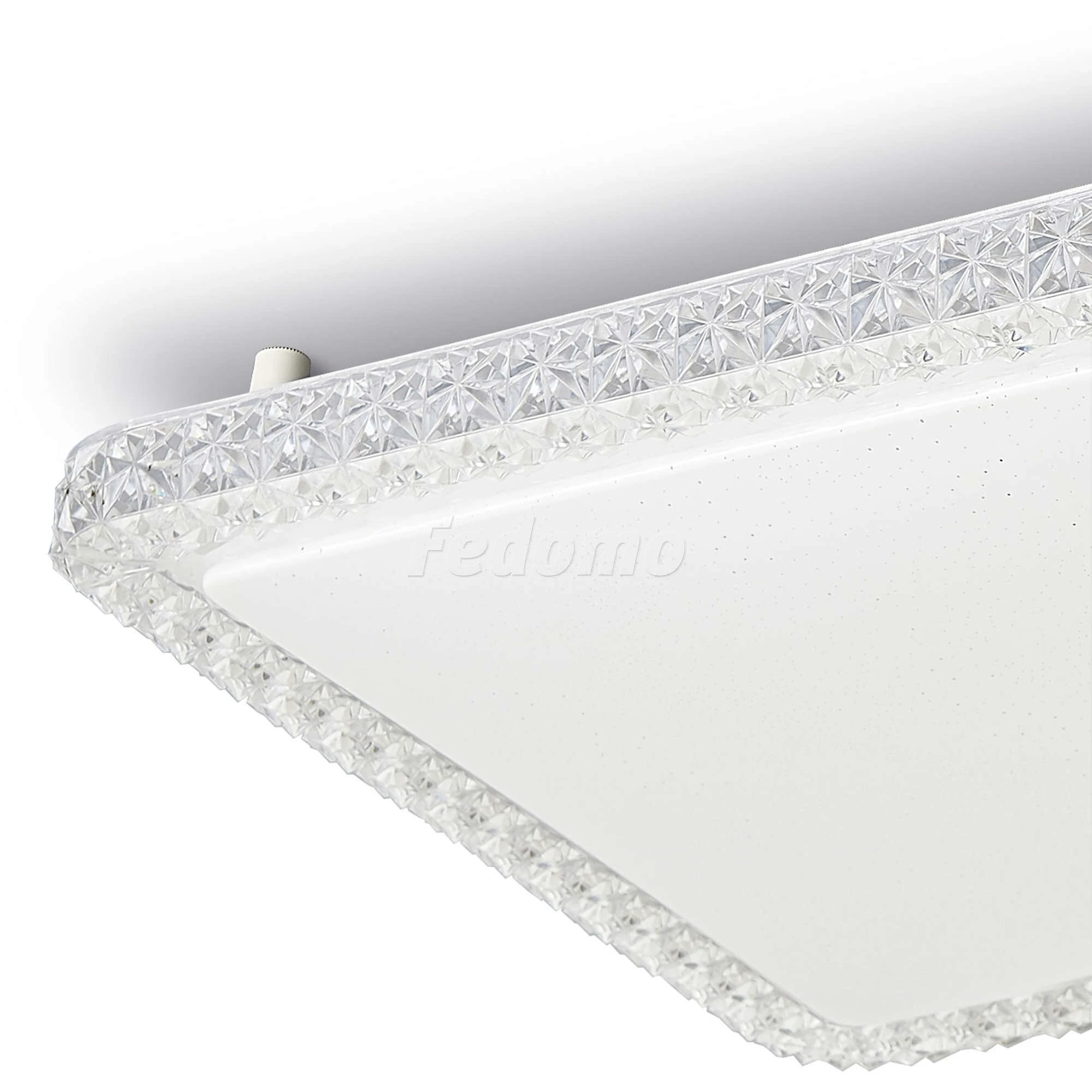 Светодиодный светильник мощностью 36Вт с хрустальным эффектом на ободе и эффектом \старлайт" на матовом рассеивателе, Уровни мощности 100-50-5% управляются обычным выключателем""