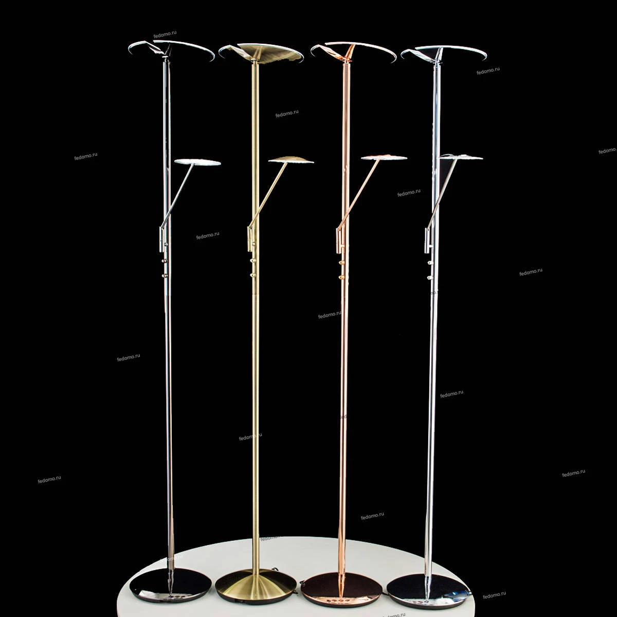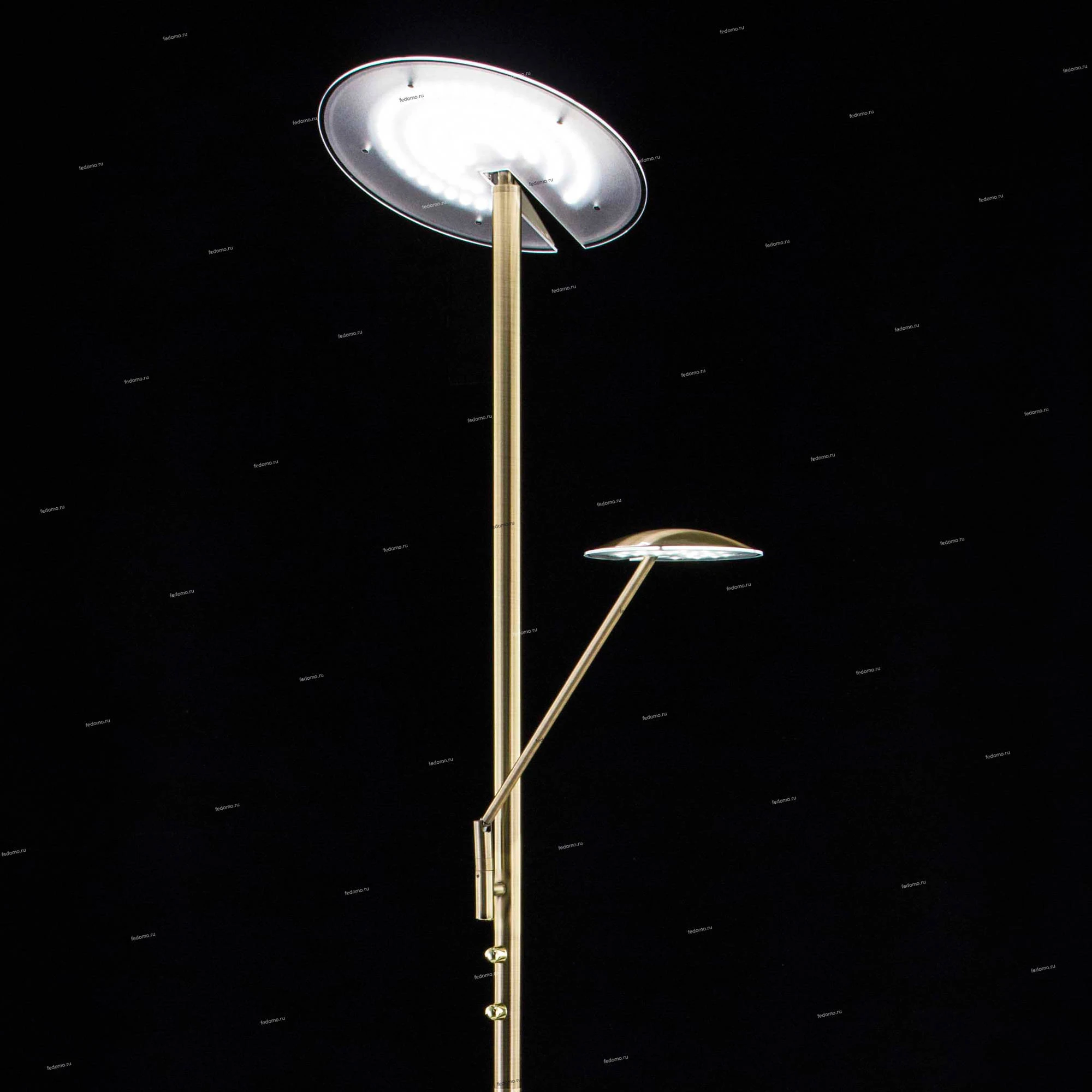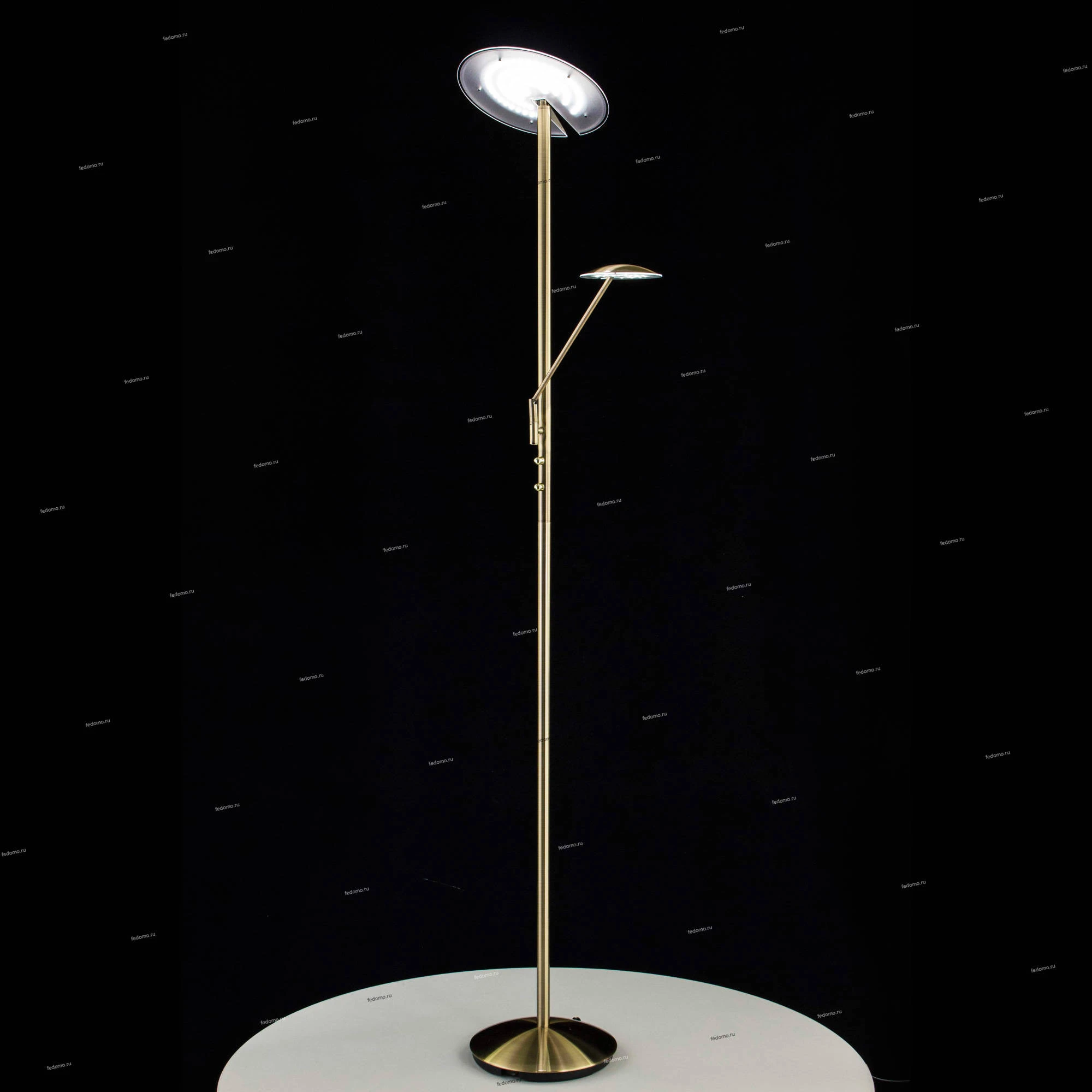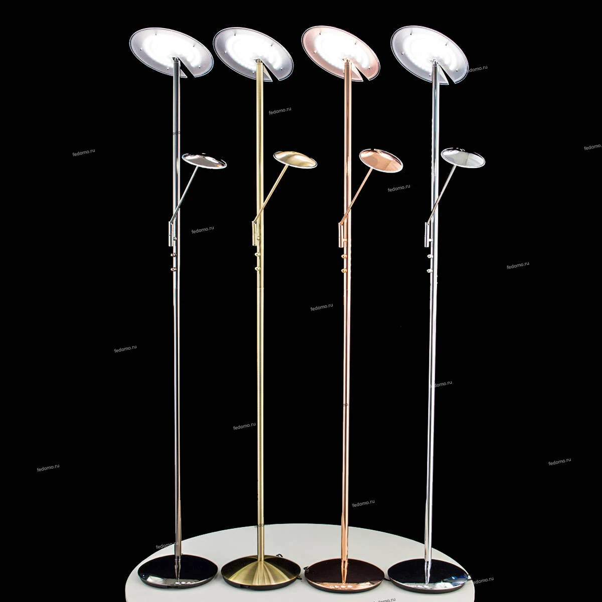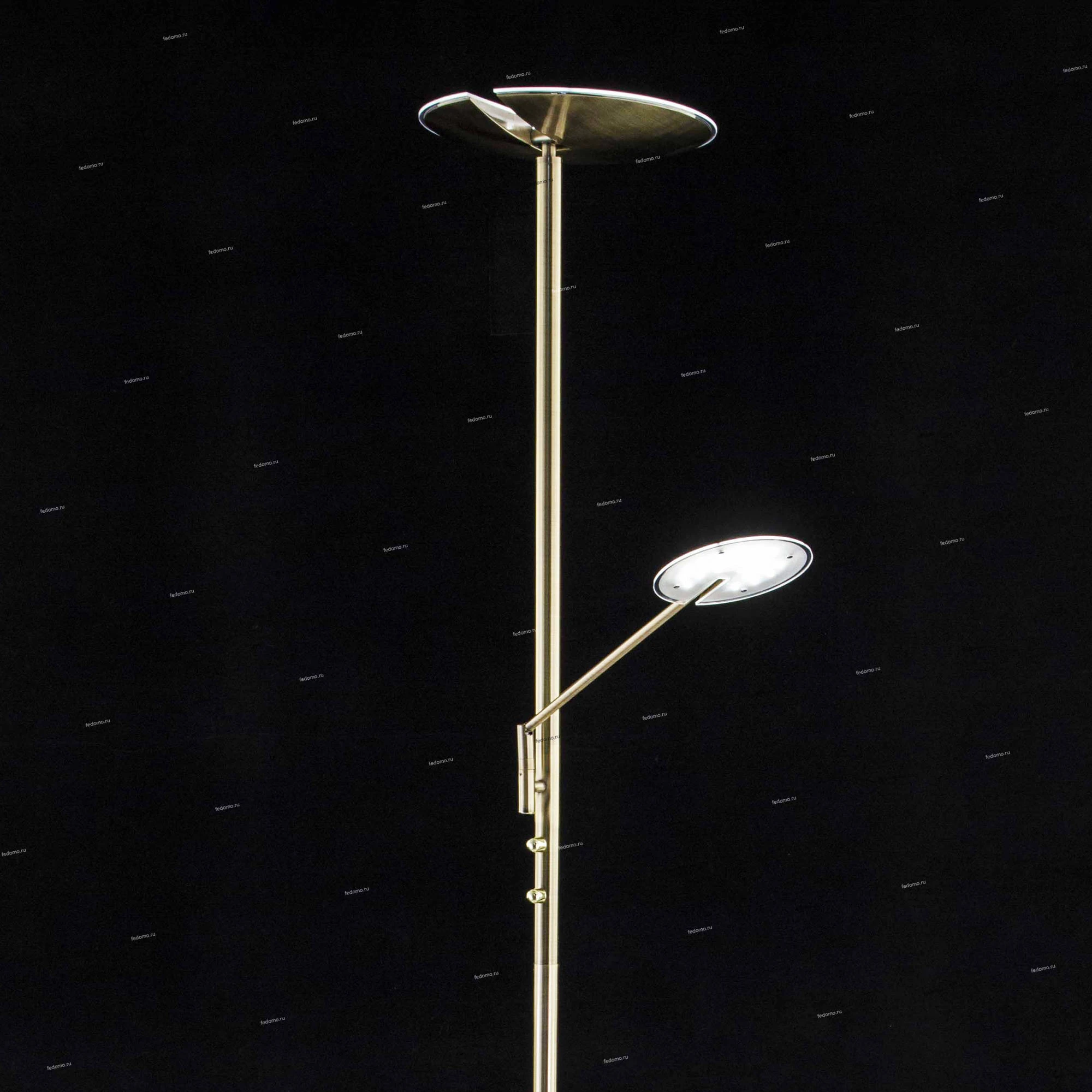 Торшер высотой 180 см с двумя регулируемыми по направлению светодиодными головами, диаметр основания 28см, потолочная голова D=28см с литым корпусом, мощностью 18Вт с диммером 20-100%; голова для чтения D=13.5 см с литым корпусом, мощность 5 Вт с диммеро