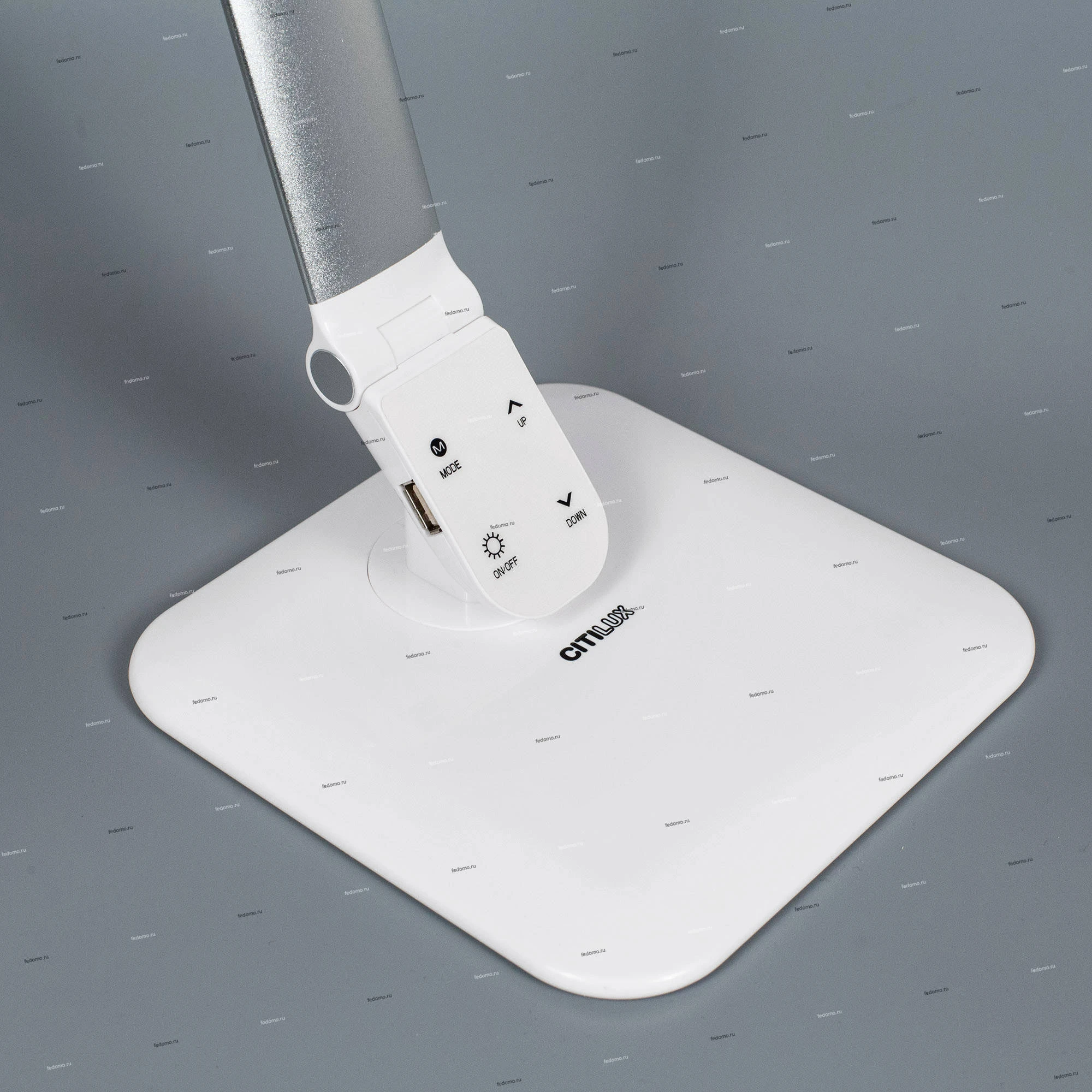 Офисная настольная лампа для школьников CL803021 из серии Ньютон от компании Citilux будет удачно смотреться на столе в кабинете, офисе, оформленных в стиле современный, хай-тек, техно, минимализм. Светодиодная офисная лампа имеет 1 рассеиватель и 1 лампочку с мощностью 7W и напряжением 220V. Модель с USB-портом, регулируется по высоте устанавливается на основание, есть возможность подключения диммера. Основной материал и цвет арматуры - серебристый металл, пластик, материал рассеивателя - металл, пластик. Светодиодная офисная лампа оборудована сенсорным выключателем. Габариты изделия: ширина - 180. В комплекте есть лампочки мм. Лучшая цена и условия доставки на Citilux CL803021 в интернет-магазине Fedomo.ru.