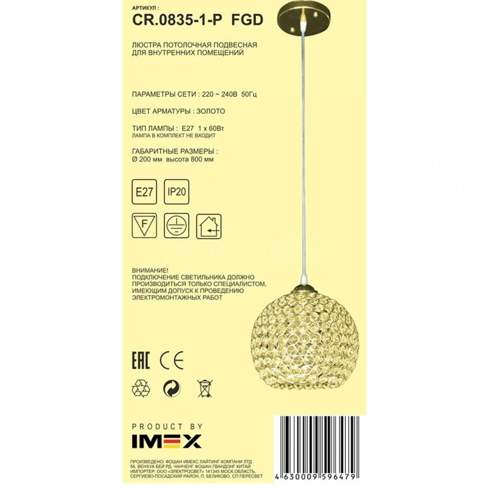 Подвесной светильник CR.0835-1-P FGD из серии Imex Деко 1185 от компании Imex подойдет для освещения кафе, кухни, оформленных в стиле арт-деко. Рассчитан на 1 лампочку с цоколем E27 и освещает площадь до 3 кв. м. Модель поддерживает установку диммера. Лучшая цена и условия доставки на Imex Imex Деко 1185 CR.0835-1-P FGD в интернет-магазине Fedomo.ru.