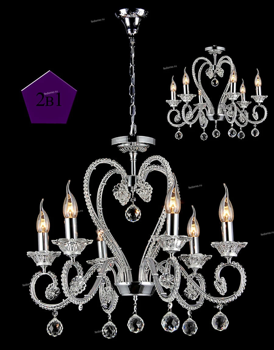 Люстра потолочная DIA332-06-N из серии Diamant 11 от компании Maytoni устанавливается на металлический крюк. Классическая люстра в виде подсвечника украшена хрусталем и прекрасно подойдет в качестве источника основного света для гостиной, спальни, оформленных в стиле барокко. Основной цвет модели - серый, хром, материал арматуры - металл. Модель оснащена цоколем E14, имеет 6 лампочек с общей мощностью 360W и напряжением 220V. Светильник поддерживает подключение диммера. Габариты: диаметр - 600 мм. Лучшая цена и условия доставки на Maytoni DIA332-06-N в интернет-магазине Fedomo.ru.