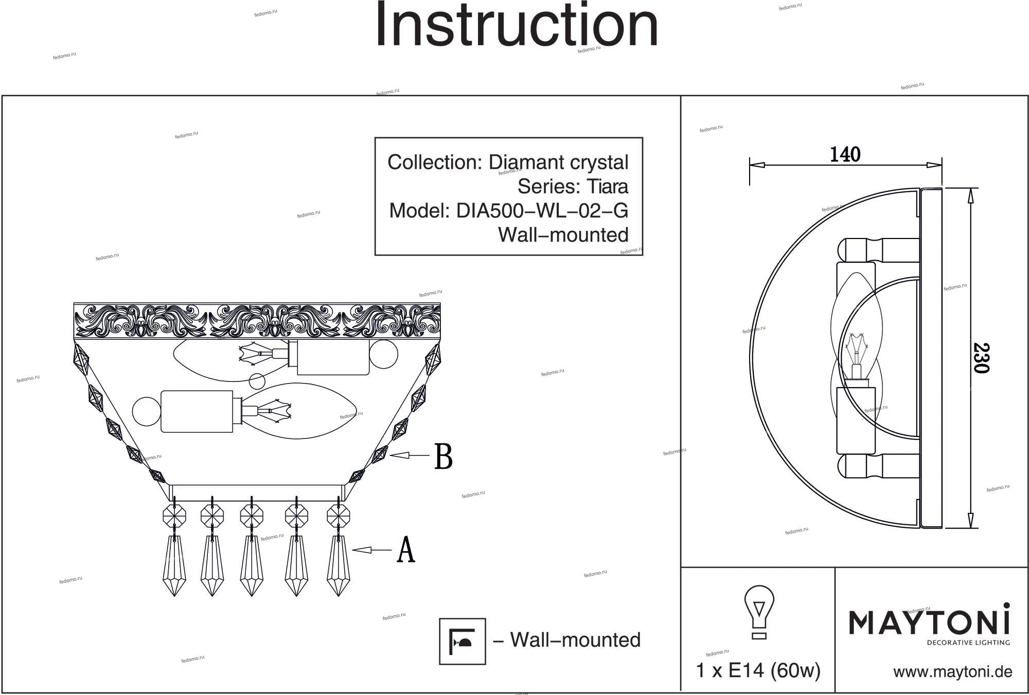 Настенный светильник DIA500-WL-02-G из серии Maytoni Tiara от компании Maytoni подойдет для освещения гостиной, холла, спальни, оформленных в стиле классический. Основной цвет изделия - золото, материал плафона - хрусталь. Рассчитан на 2 лампочки с цоколем E14 и освещает площадь до 6 кв. м. Модель поддерживает установку диммера. Лучшая цена и условия доставки на Maytoni Tiara DIA500-WL-02-G в интернет-магазине Fedomo.ru.