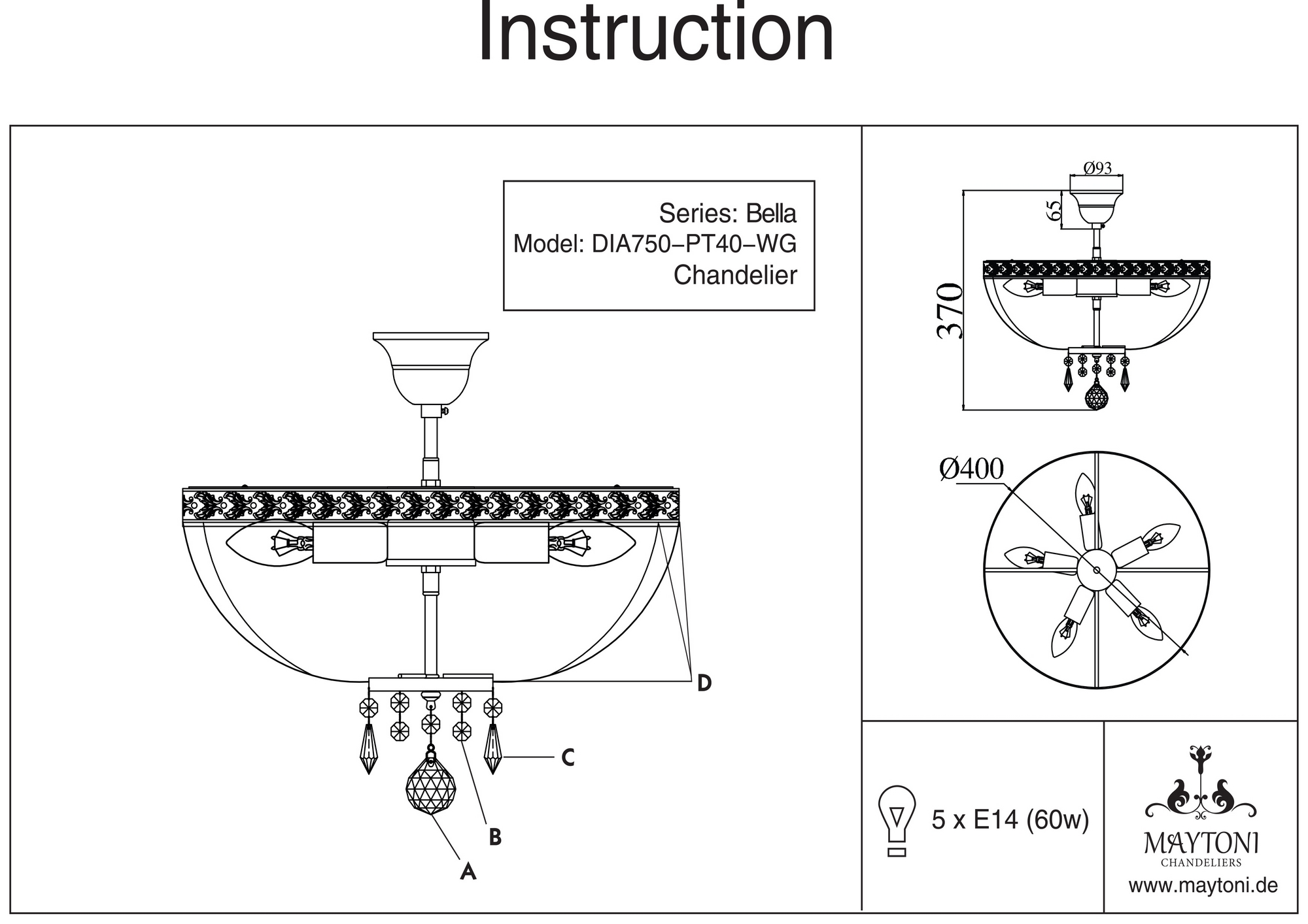 Люстра потолочная хрустальная DIA750-PT40-WG из серии Bella от компании Maytoni устанавливается на металлический крюк. Классическая люстра украшена хрусталем и прекрасно подойдет в качестве источника основного света для гостиной, прихожей и коридора, оформленных в стиле арт-деко, барокко. Основной цвет модели - золото, материал арматуры - металл. Люстра имеет 1 плафон со свечением вверх, материал изготовления - прозрачный хрусталь. Модель оснащена цоколем E14 (5xE14), имеет 5 лампочек с общей мощностью 300W и напряжением 220V. Светильник поддерживает подключение диммера. Габариты: высота - 300 мм, диаметр - 400 мм. В комплекте есть перчатки для сборки хрусталя. Лучшая цена и условия доставки на Maytoni DIA750-PT40-WG в интернет-магазине Fedomo.ru.