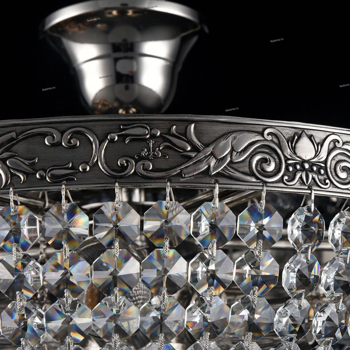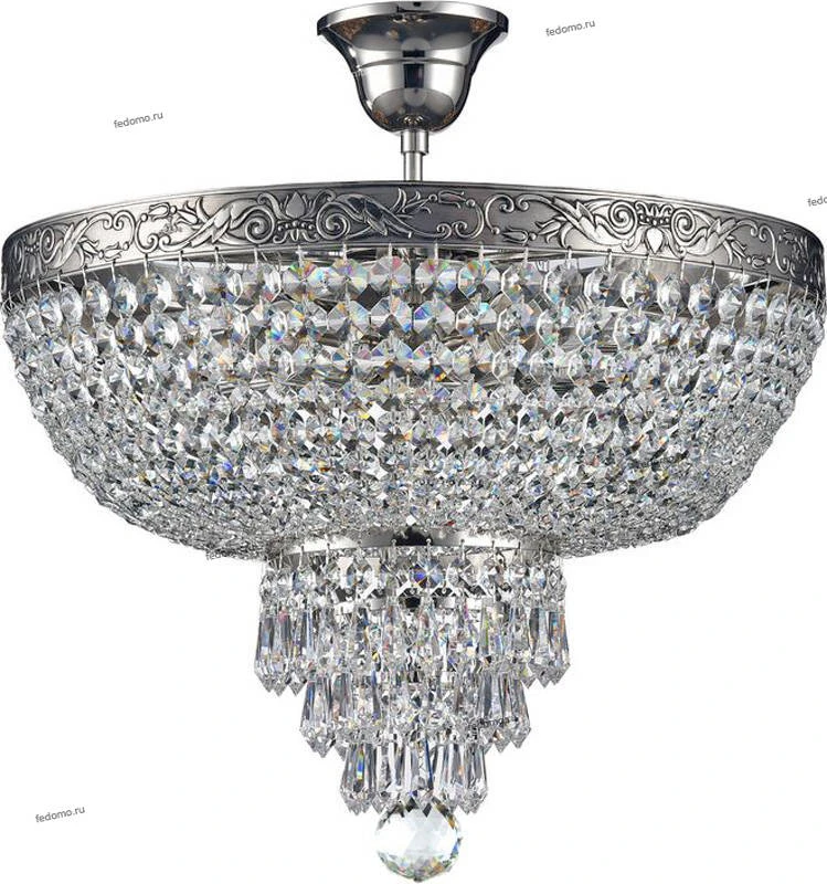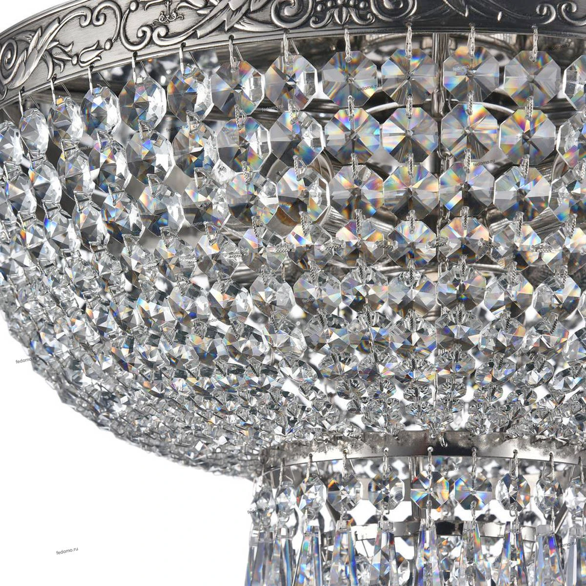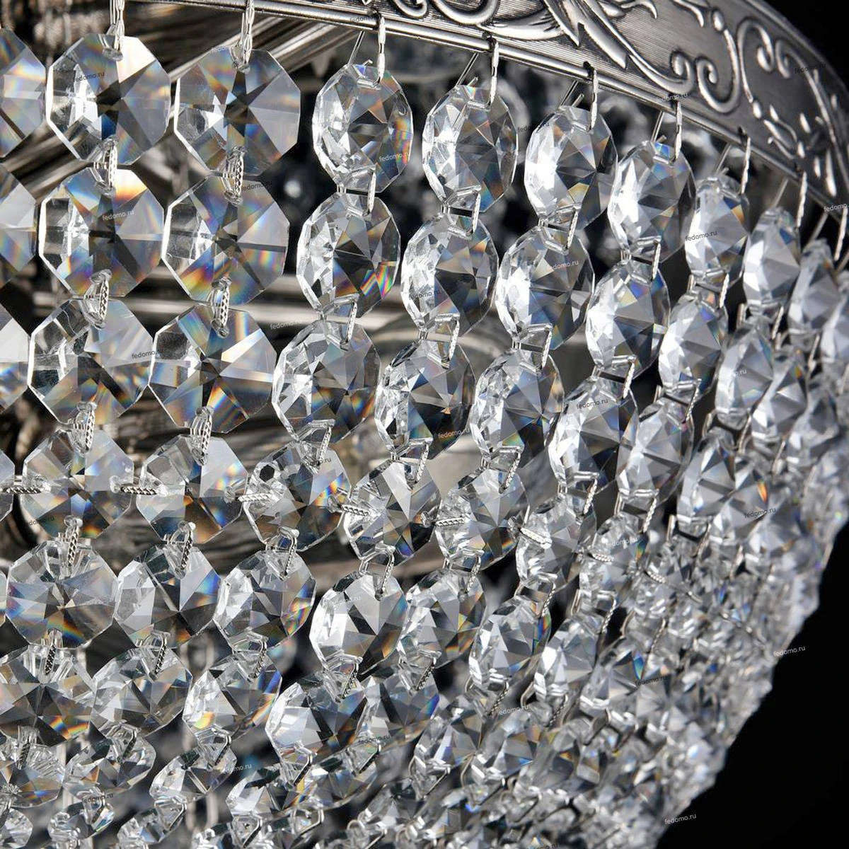 Каркас из металла с золотым и хромовым покрытием. Обрамление латунной лентой с ручным чернением. Разнообразная огранка подвесок из хрусталя высшего класса.