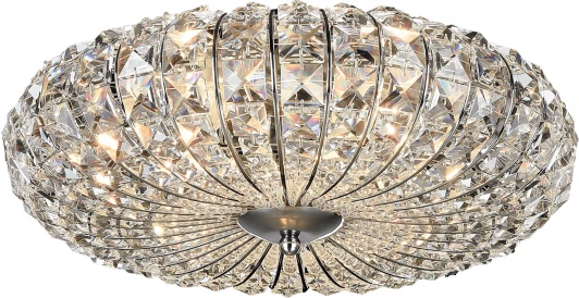 Материал арматуры – металл, цвет – никель. Металлический каркас абажура декорирован гранеными кристаллами. Компактная высота.