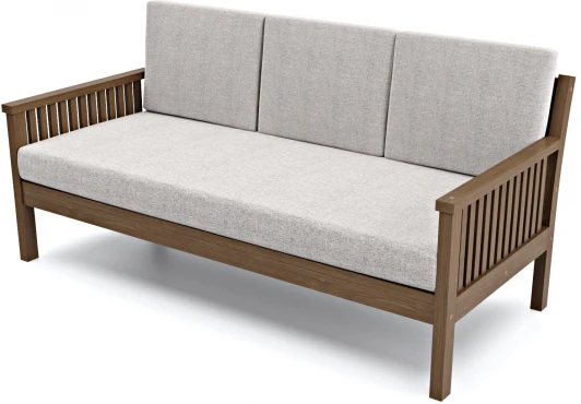 Диван Норман Б орех серая рогожка - станет прекрасным приобретением для вас и вашей семьи. Каркас изделия выполнен из натурального и экологически чистого массива сосны, окрашенного под орех и сверху покрытого лаком. Матрас и подушки исполнены в серой рогожке. Чехол матраса не съемный, в комплекте идут 3-и приспинные формовые подушки. Основанием служит реечное дно, из массива сосны. На диване могут расположиться 3-и взрослых человека, вес каждого 120-140кг. Длина дивана 177 см, а высота посадочного места 47 см. Размеры спального места 72x171 см. Материал каркаса: массив сосны; Материал обивки: рогожка. Данная мебель для закрытых помещений или веранд с крышей, прямой солнечный свет или даже грибной дождик для него противопоказаны. Гарантия 18 месяцев.