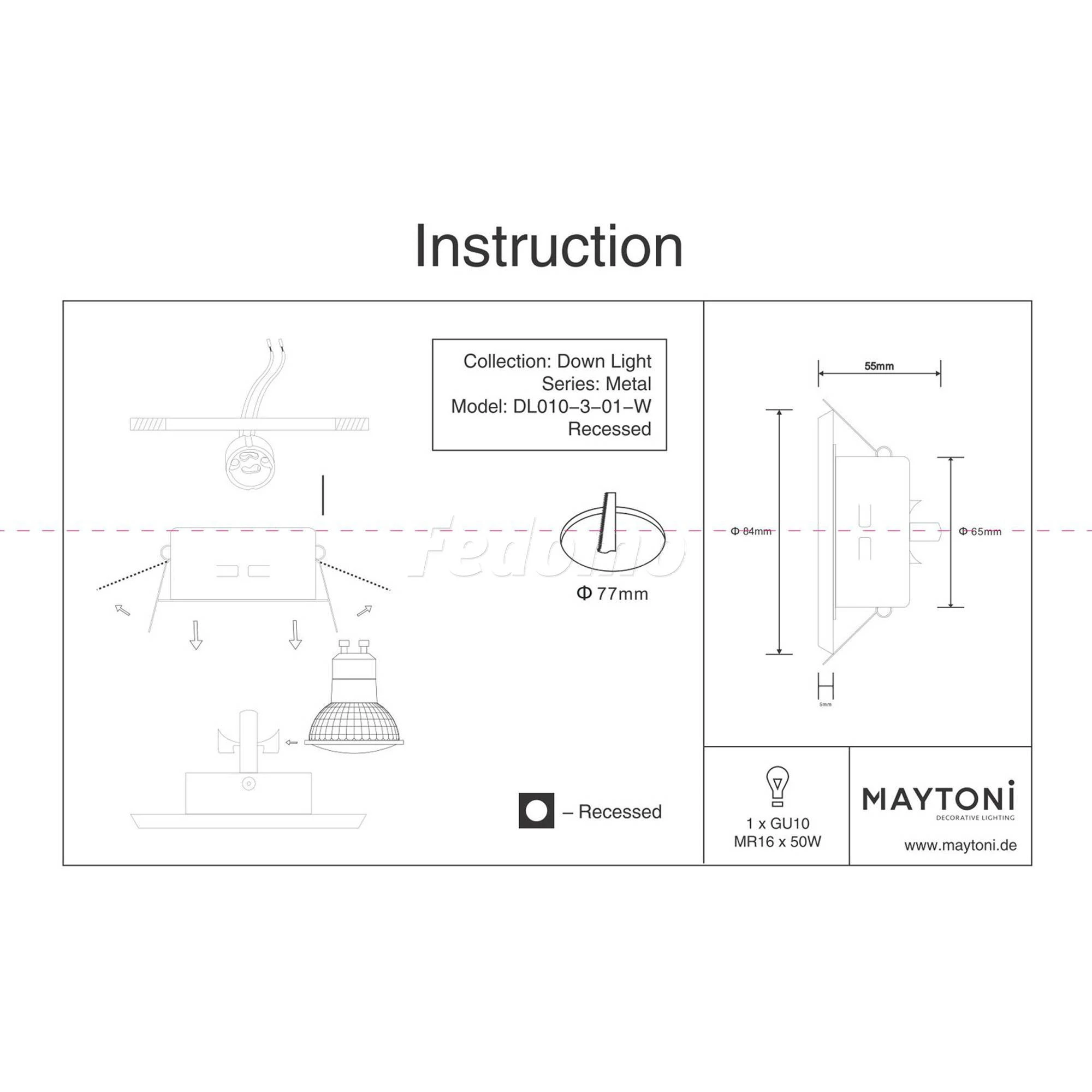 DL010-3-01-W Встраиваемый точечный светильник Maytoni Metal Modern DL010-3-01-W