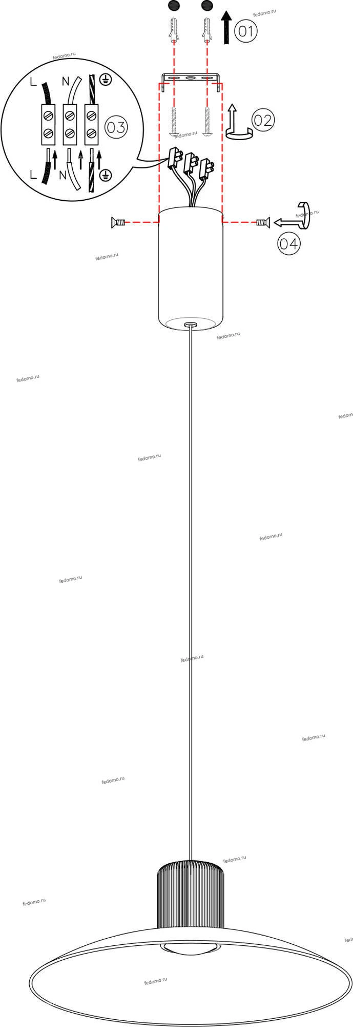 Полностью укоротив трос, светильник будет закреплен максимально близко к потолку и внешне будет похож на потолочный.